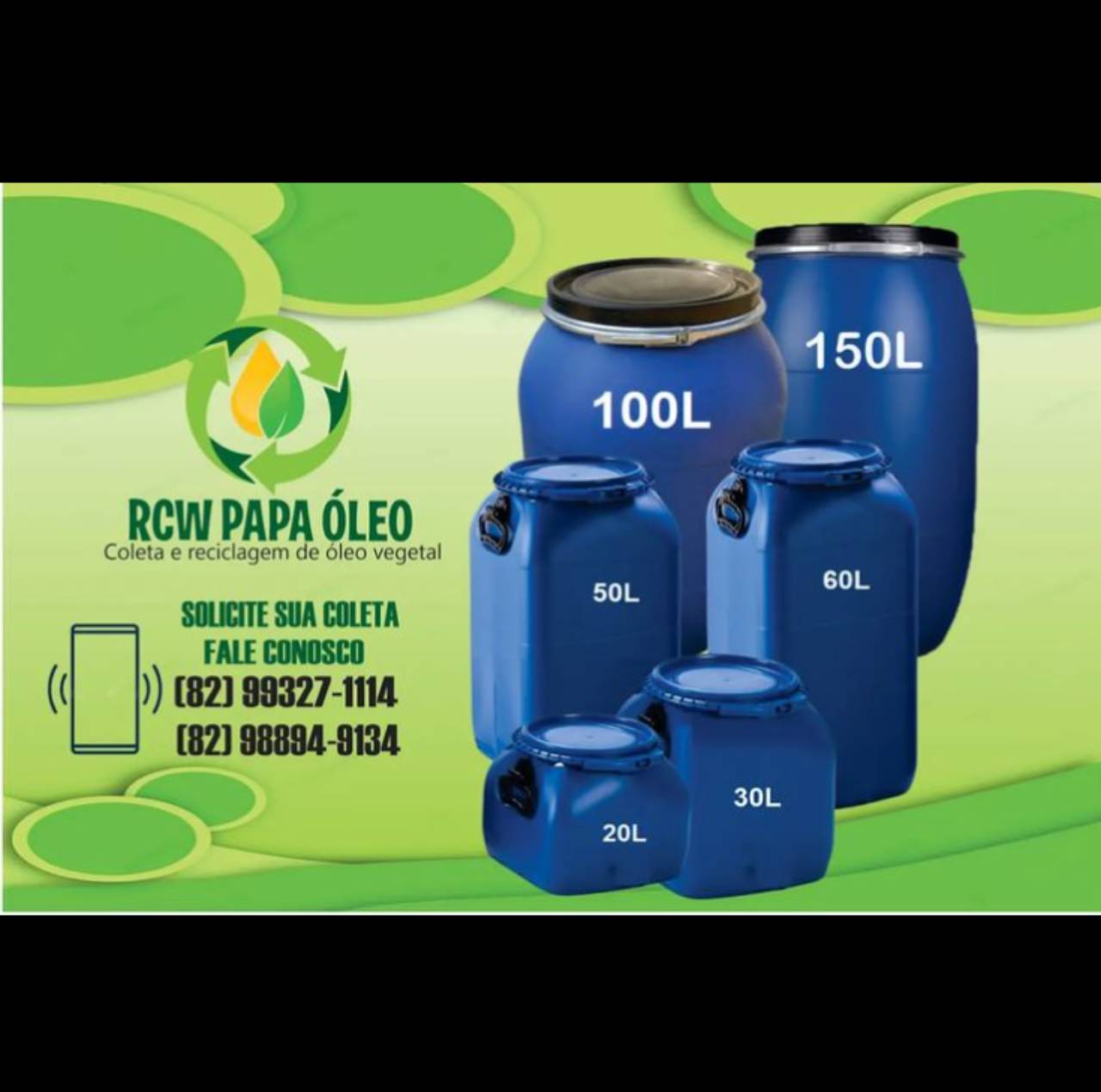 A RCW PAPA ÓLEO é a escolha ideal para quem busca uma solução eficaz e sustentável para a coleta de óleo vegetal em Maceió. Nosso serviço abrange todas as necessidades, desde residências até estabelecimentos comerciais, oferecendo uma maneira conveniente e responsável de lidar com o óleo de cozinha usado.