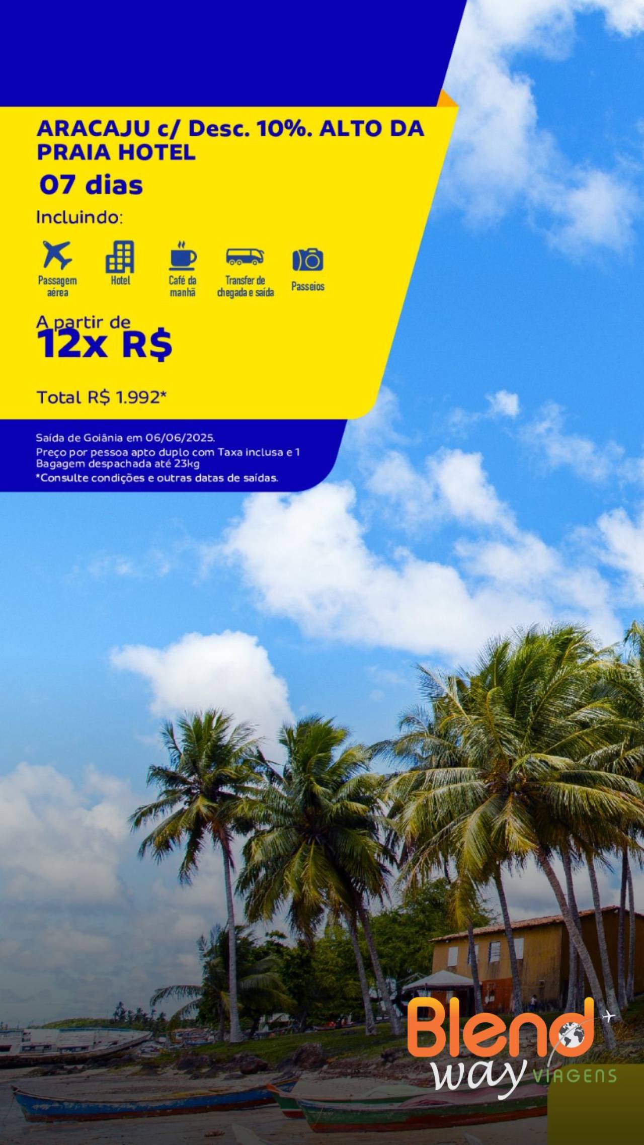 A Blend Way Viagens em Mineiros traz uma oportunidade imperdível para você aproveitar Aracaju com 10% de desconto no pacote para o Alto da Praia. Desfrute da beleza da capital sergipana, com suas praias encantadoras e toda a estrutura de lazer que você merece. Não deixe essa chance passar e viva momentos inesquecíveis com um super desconto!