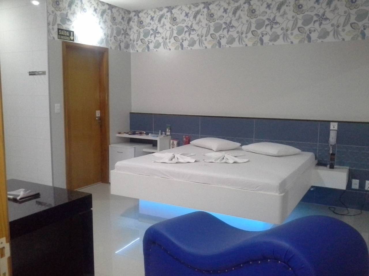 Apartamento com canais eróticos, ar-condicionado, ducha, frigobar, garagem automática e TV.