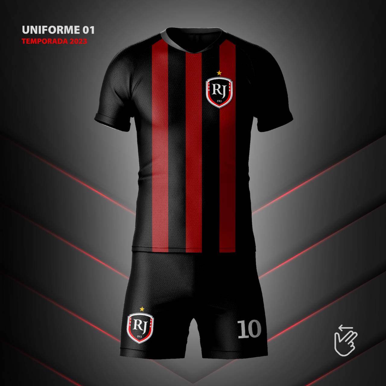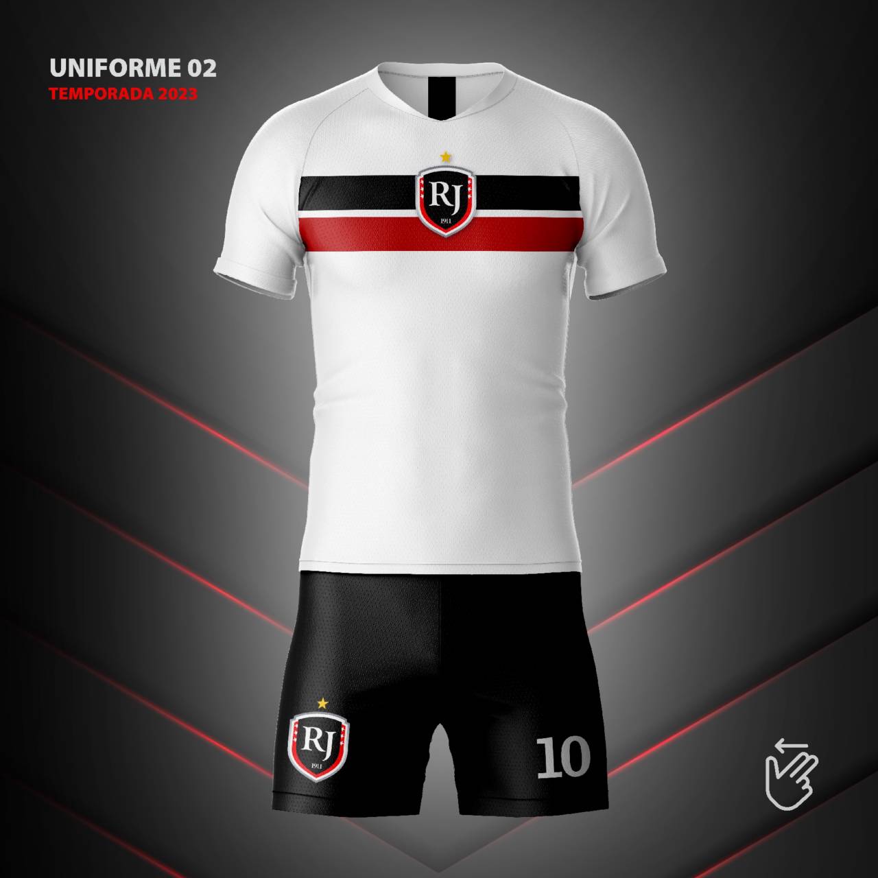 No campo central a sigla RJ e na parte de baixo, inserimos 1911, ano da fundação do clube. Nas laterais as seis estrelas brancas representam os principais títulos regionais e o inédito título internacional Brodoswki-SP.