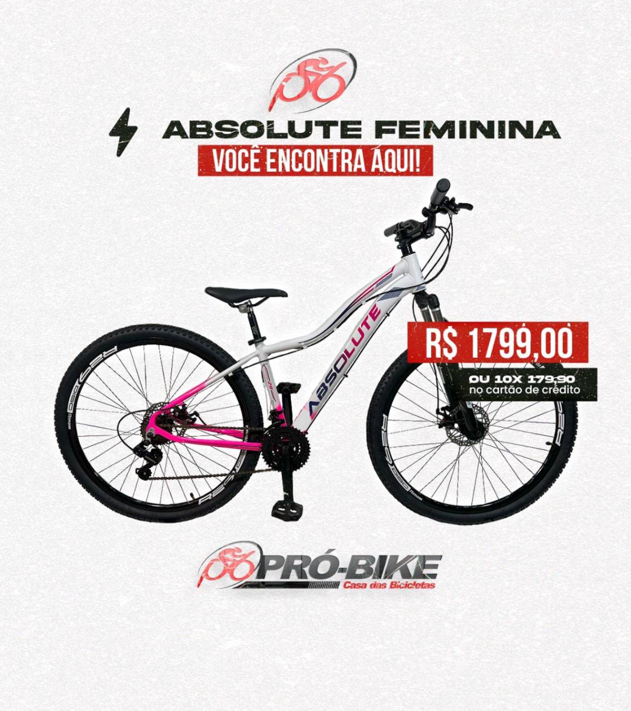 Venha conferir a Absolute Feminina na Pró Bike Casa das Bicicletas, em Dourados/MS, e descubra a bicicleta perfeita para seu estilo de vida ativo e saudável.