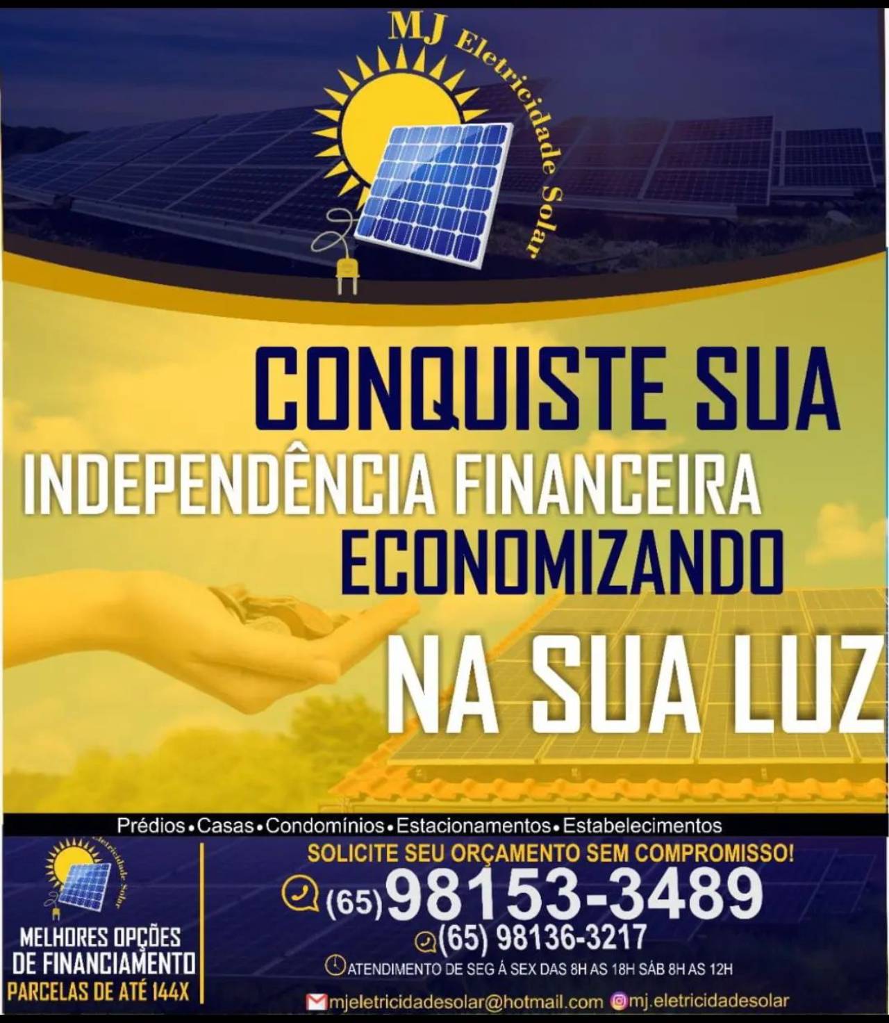 A Mj Eletricidade Solar é uma empresa especializada em energia solar que atua na cidade do Cuiabá. Contamos com uma equipe altamente qualificada para lhe oferecer os melhores serviços do mercado.