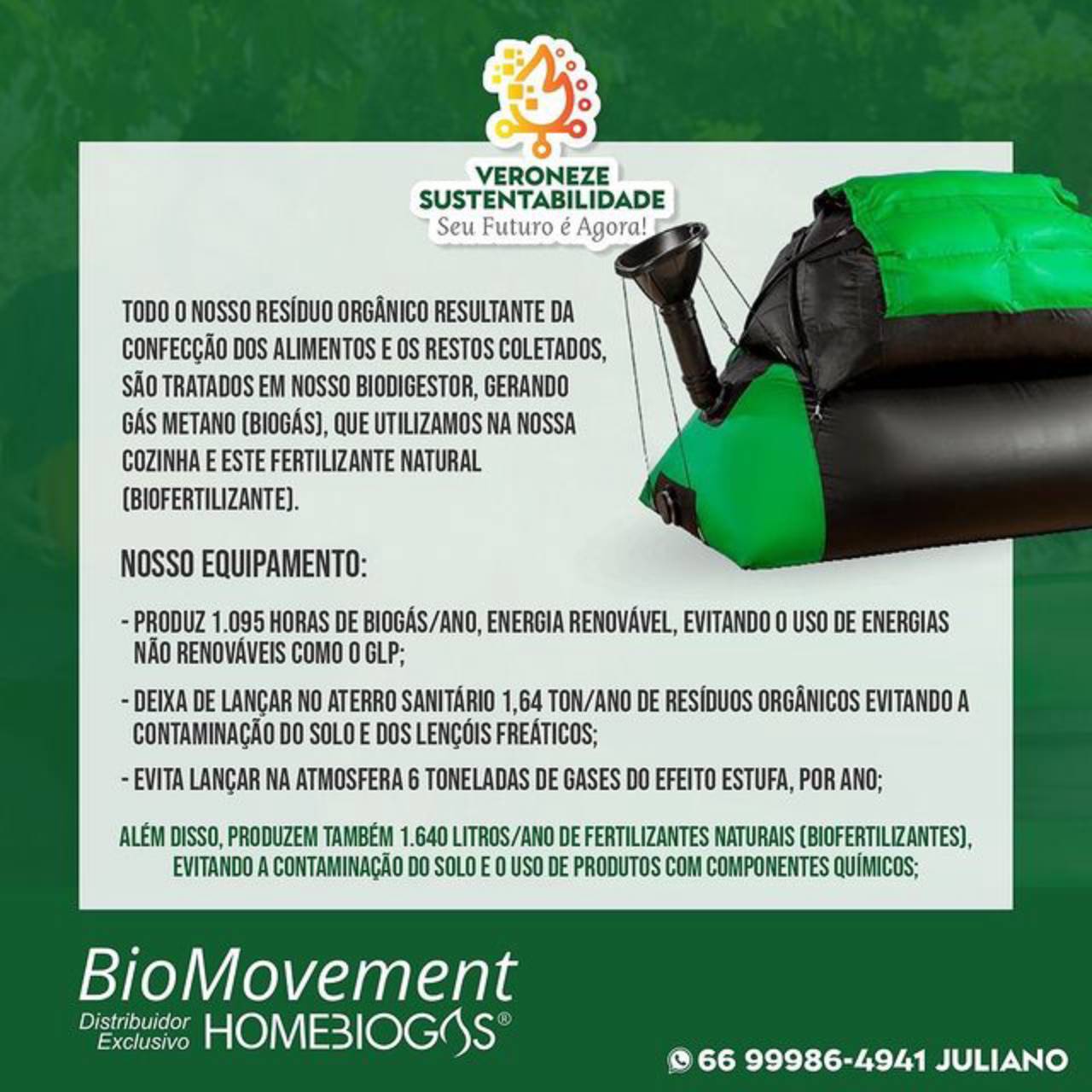 A Veroneze Sustentabilidade, visa o futuro de um mundo sustentável e aliamos economia com a preservação do meio ambiente. O Biodigestor Comercial é um dos produtos que indicamos para você que sonha com um mundo mais sustentavel. Esse é o produto ideal para você que busca por:
