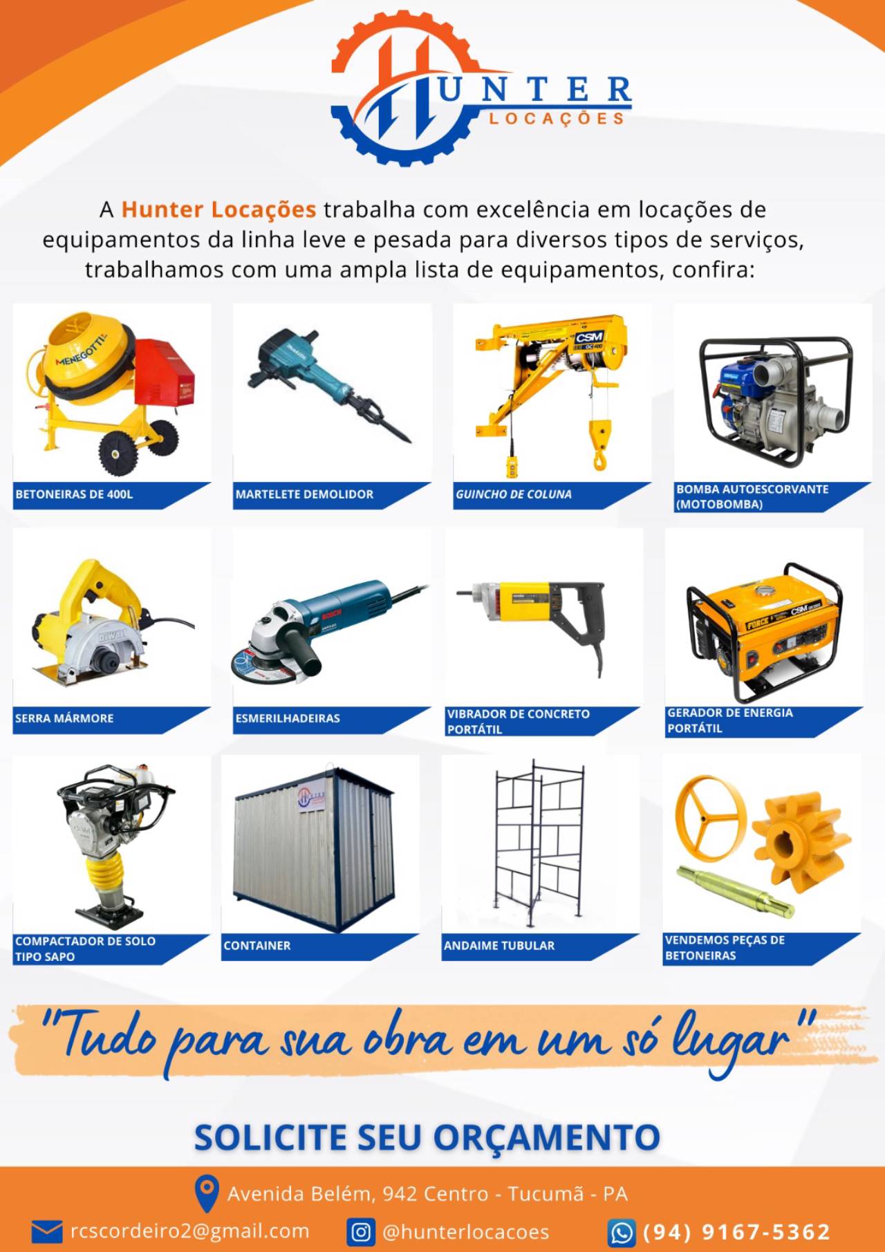 Locação de equipamentos, Tucumã - Hunter Locações