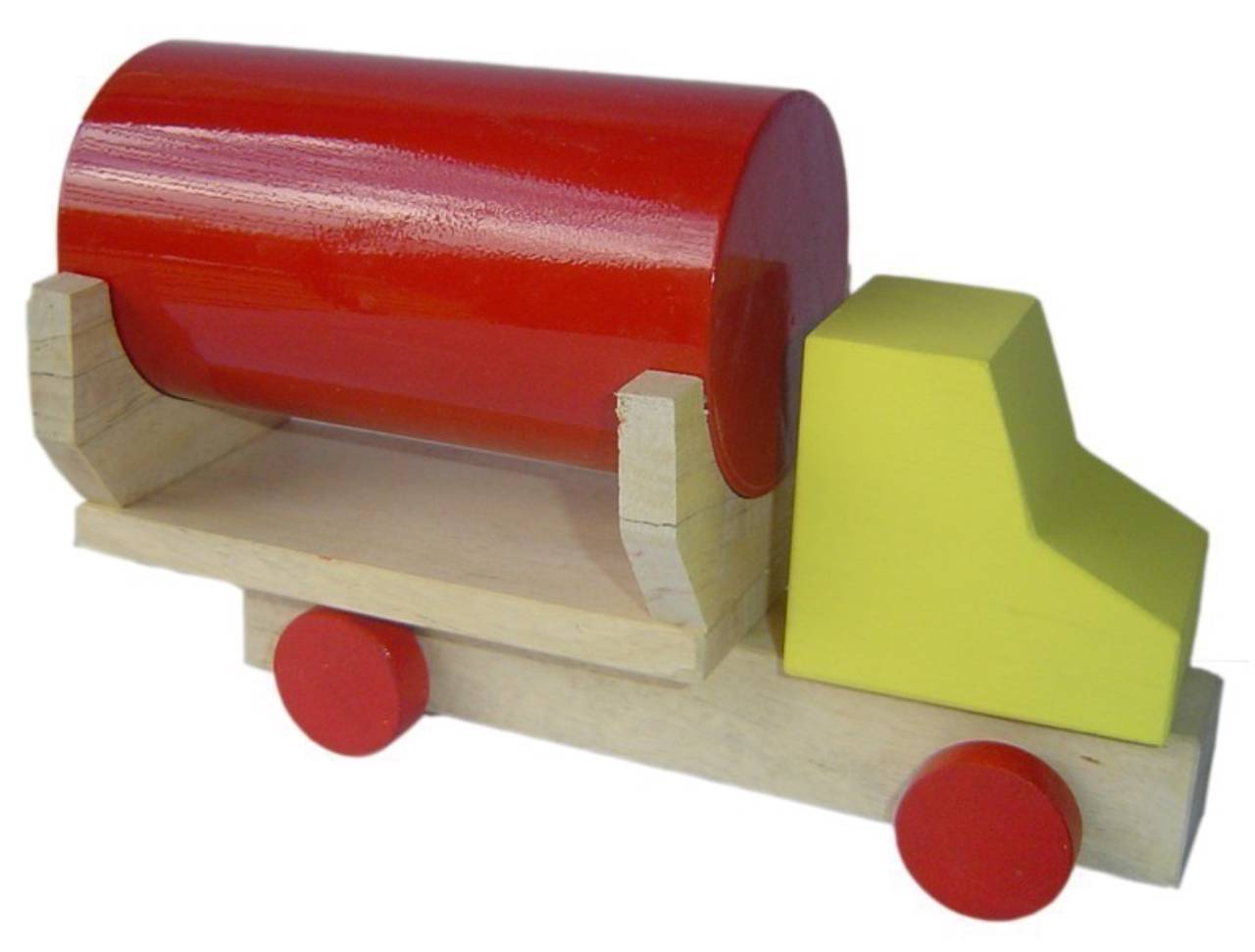 Ref. 053 - CARRO DE TAMBOR - Matéria-Prima: Madeira e PVC - Medindo: 9cm x 23cm x 15cm, contém: 2 peças desmontável. Objetivo: Trabalhar a parte de montar e desmontar. A partir dos 02 anos.