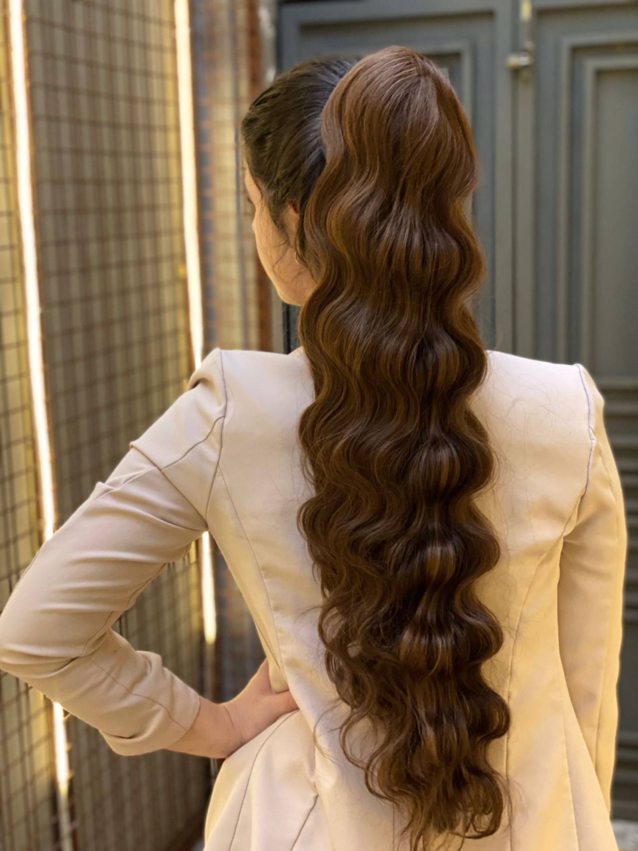 Aplique rabo de cavalo castanho médio