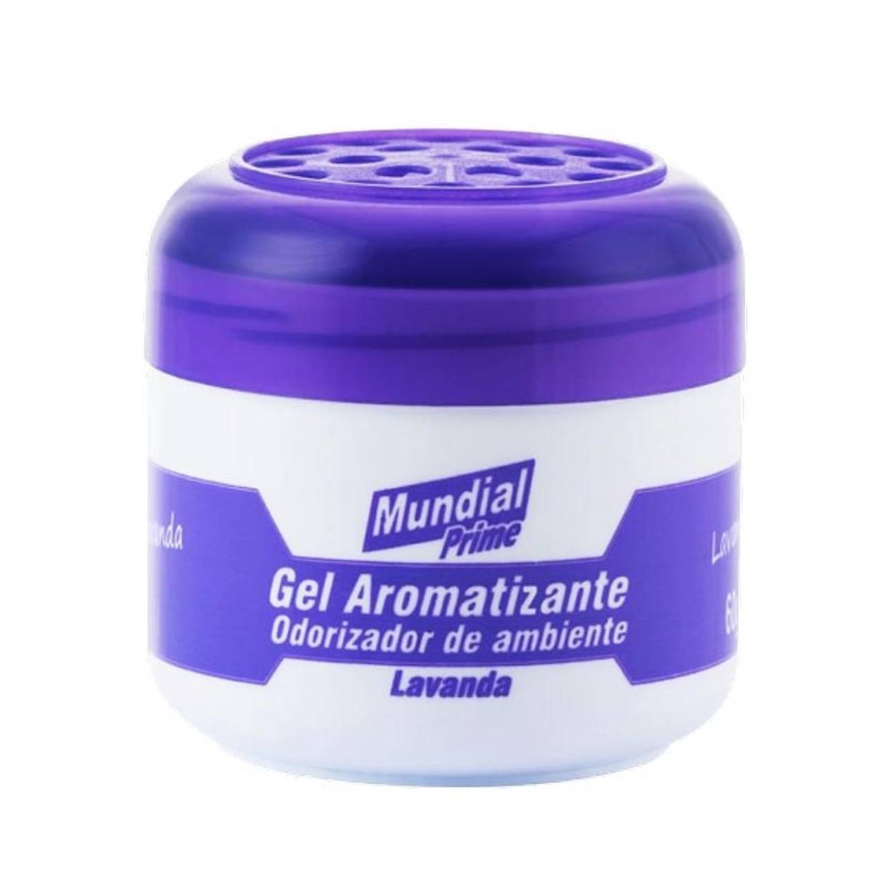 Aromantizante em gel lavanda da marca Mundial Prime. Libera gradualmente o perfume e mantém o ambiente perfumado por mais tempo.