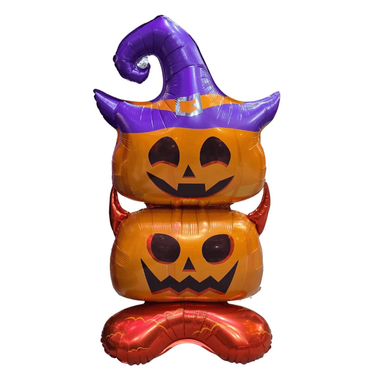 Entre no clima do Halloween com este divertido e imponente balão metalizado de abóboras com 1,5 metros de altura! Com design criativo, ele une duas abóboras com expressões assustadoras e uma base estável, além de um chapéu roxo de bruxa que dá o toque final perfeito para sua decoração temática.Ideal para festas infantis, eventos escolares, vitrines, recepções, ambientes instagramáveis e decorações residenciais, esse balão é fácil de montar, dispensa gás hélio e pode ser reutilizado com cuidado.