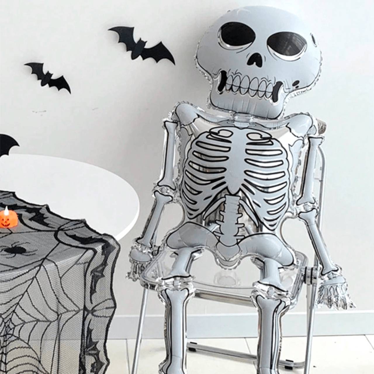 O Balão Metalizado Esqueleto 158cm - PARTIUFESTA é a peça perfeita para dar vida à decoração de Halloween, combinando tamanho impressionante, design detalhado e brilho metálico. Com 158 centímetros de altura, feito em material resistente, pode ser inflado com ar ou gás hélio, garantindo durabilidade e presença marcante na festa. Seu formato de esqueleto realista transforma qualquer ambiente, funcionando como destaque em painéis, entradas, áreas de fotos ou como centro de atenção na decoração temática. Prático de montar e visualmente impactante, é ideal para quem quer impressionar e criar um clima assustador, divertido e cheio de personalidade.