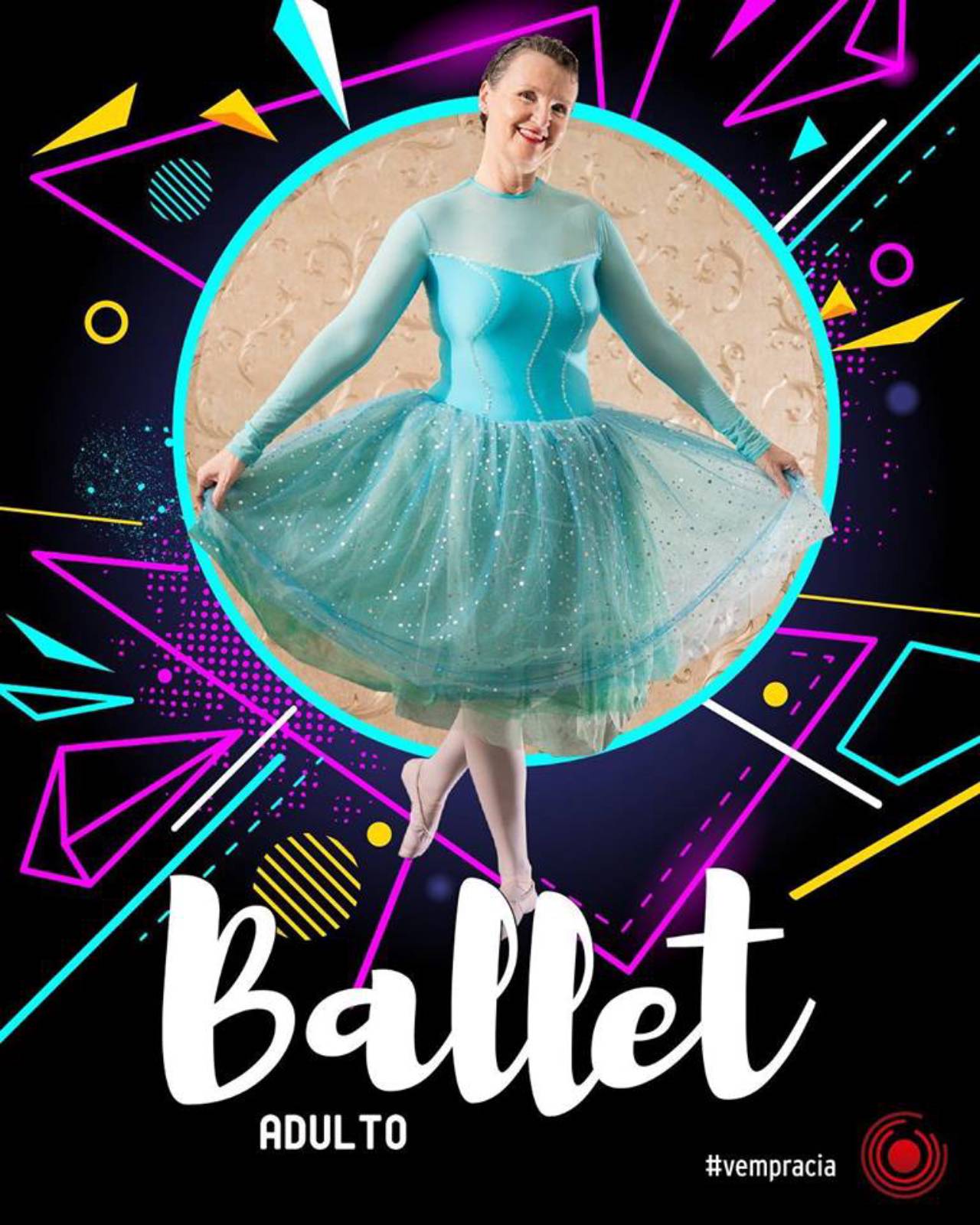 O curso de ballet adulto destina-se a pessoas que desejam resgatar o sonho de dançar. Sem a cobrança da perfeição e do tempo, mas com cuidado, atenção e paciência o aluno descobrirá que é sempre possível dançar. É explorado a movimentação corporal e o uso do espaço físico,