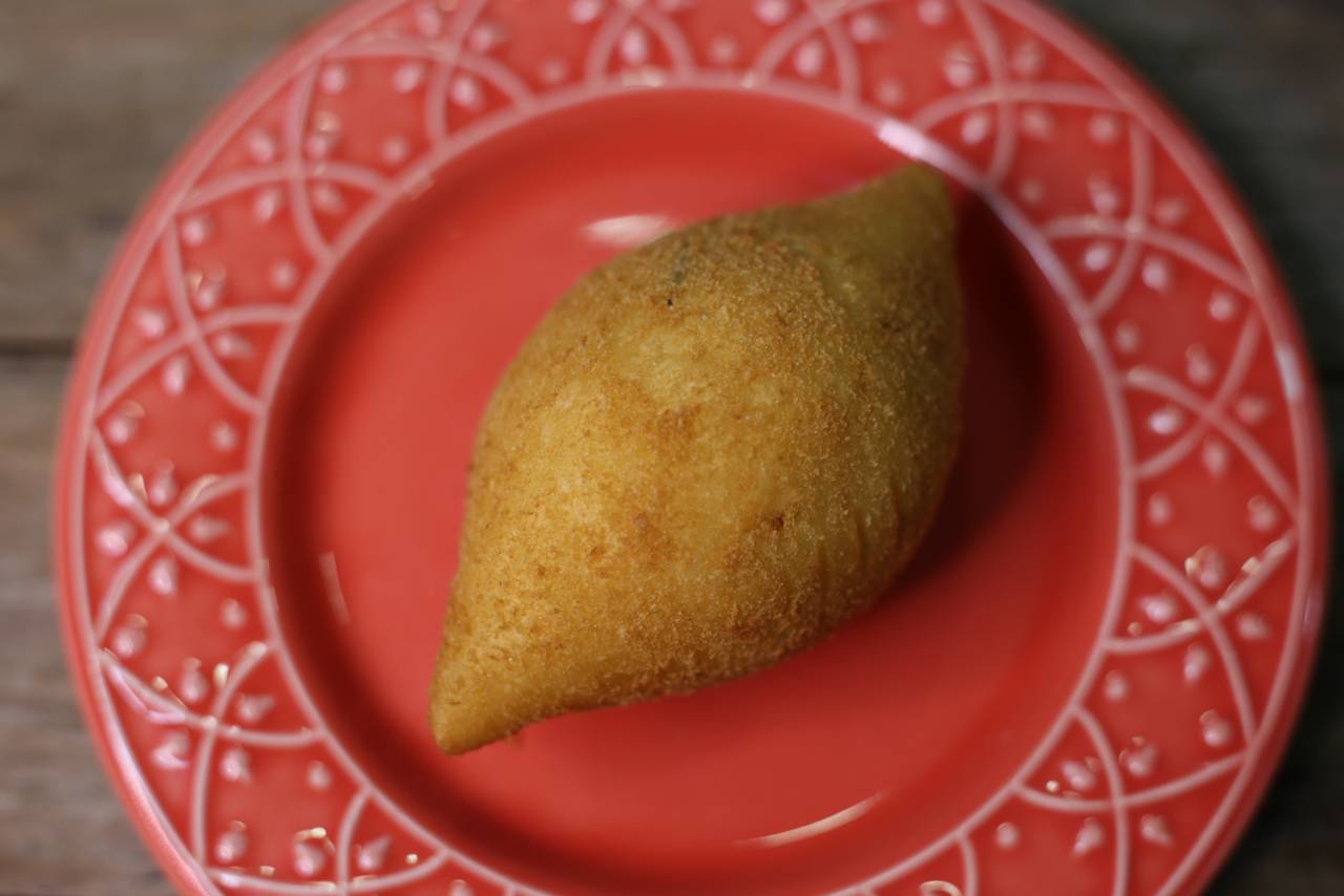 Bolinho de carne frito com massa especial Adorela. Verifique a disponibilidade.