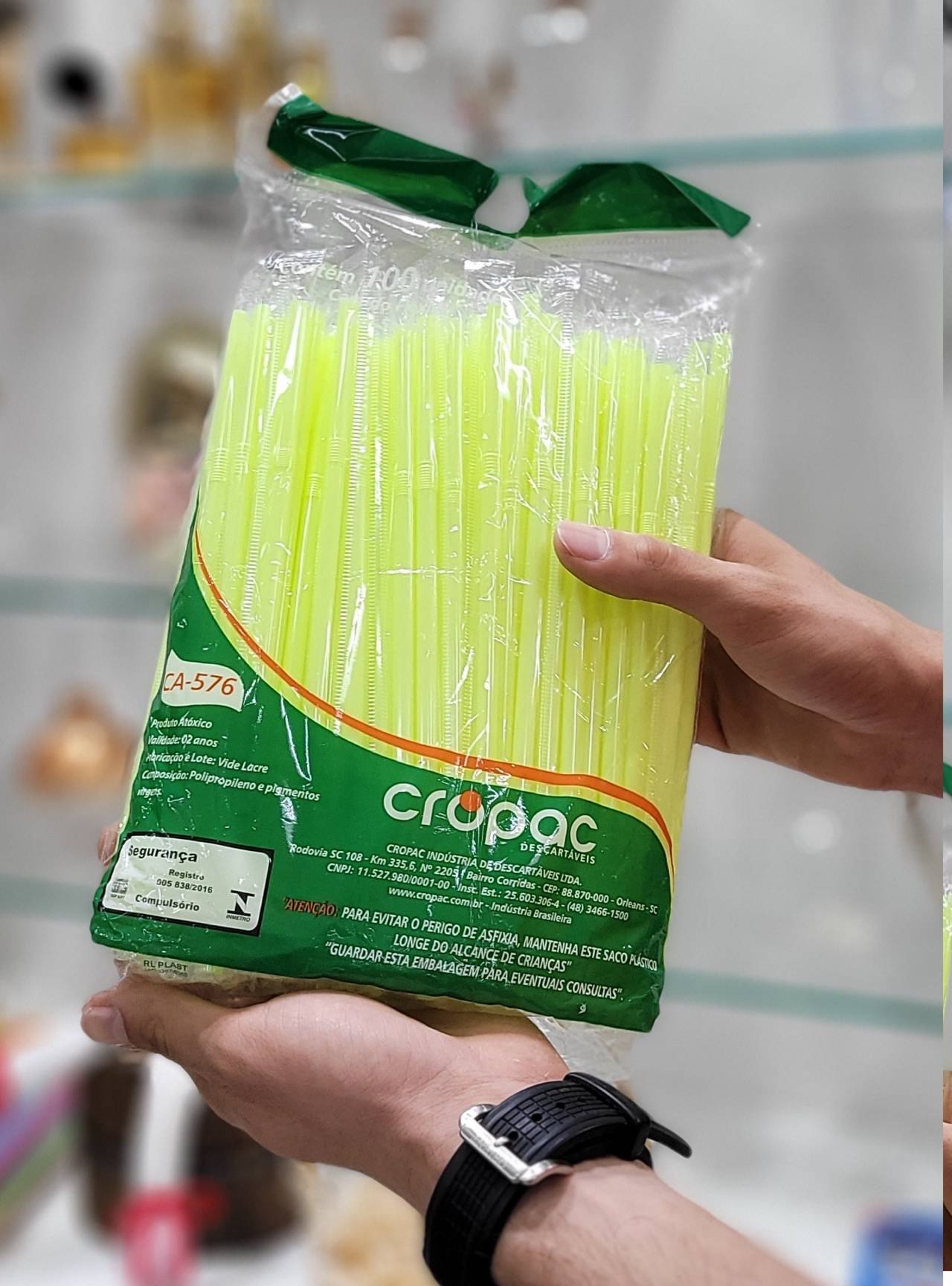 Canudo de plástico CA536 mexedor sache 175X5,8MM verde neon com 100