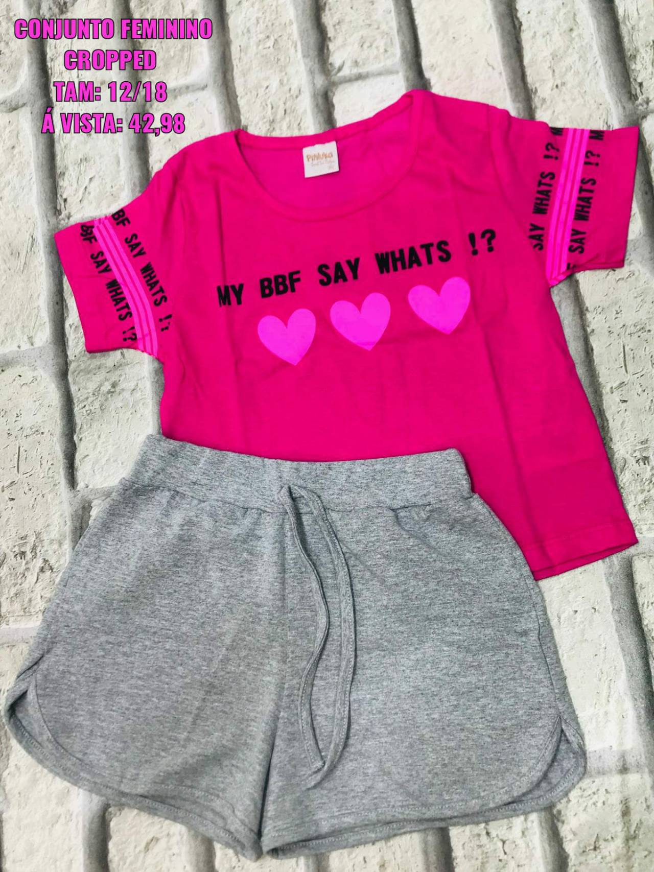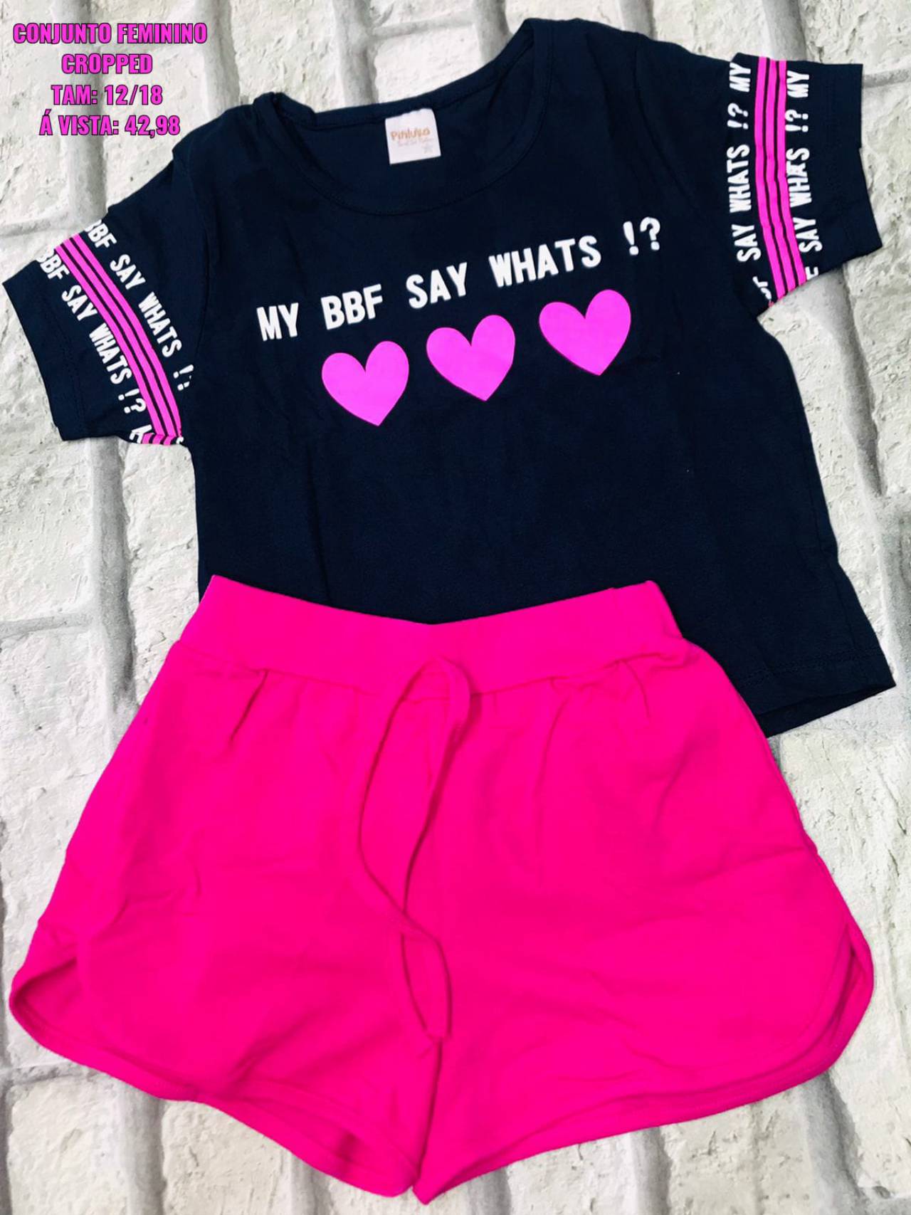 Conjunto Cropped feminino - Tamanho 12 ao 18