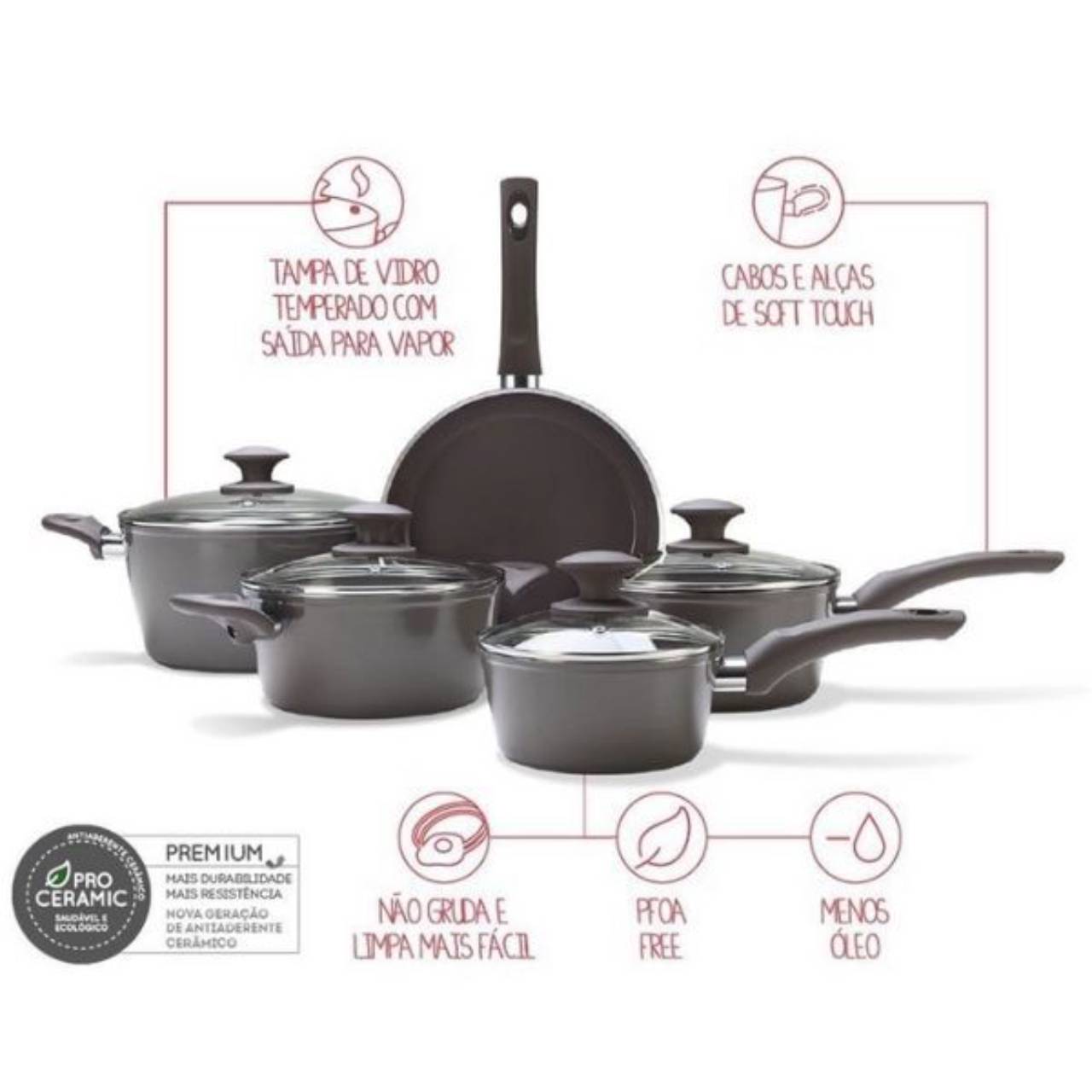 Jogo de Panelas 5 peças cerâmica Life Optima Grafite - Brinox