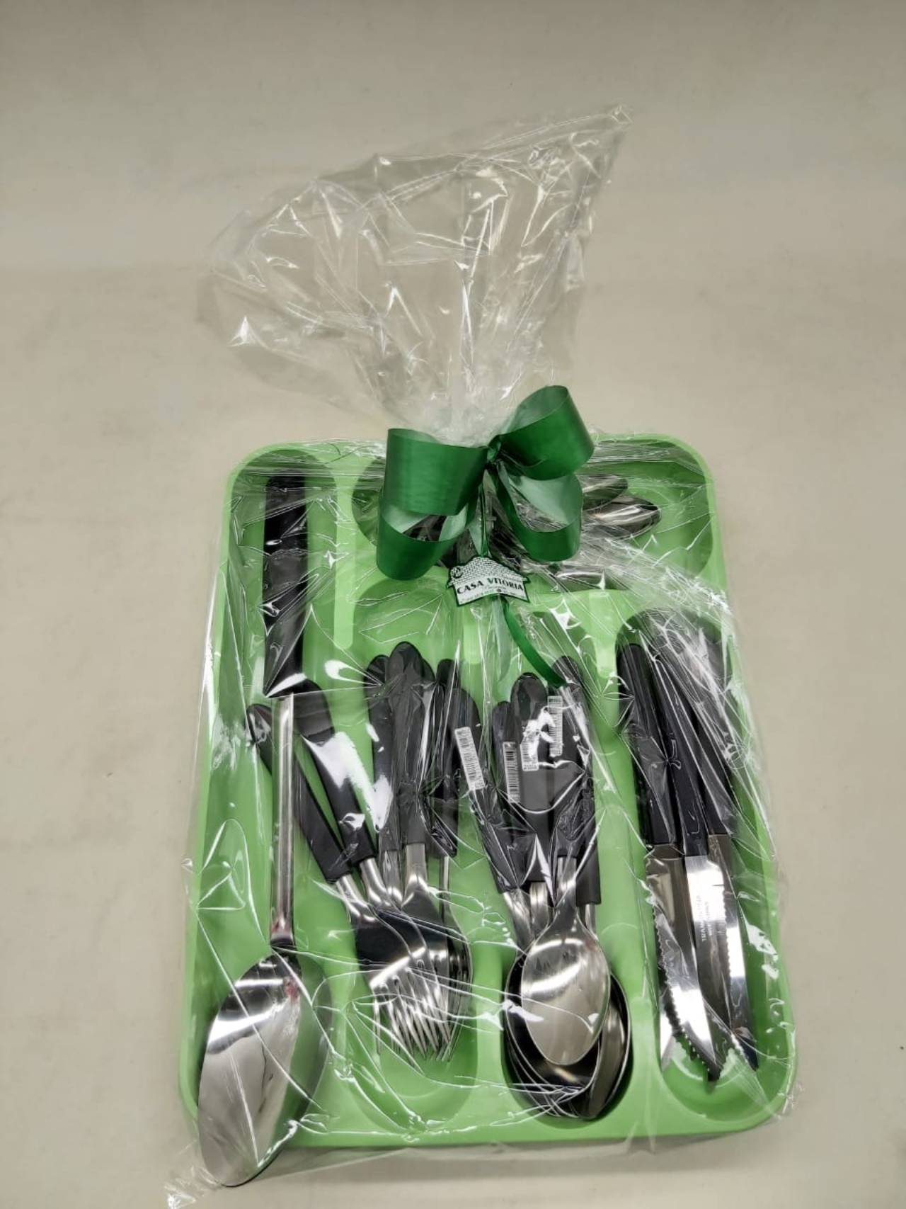 Jogo de talheres com suporte;