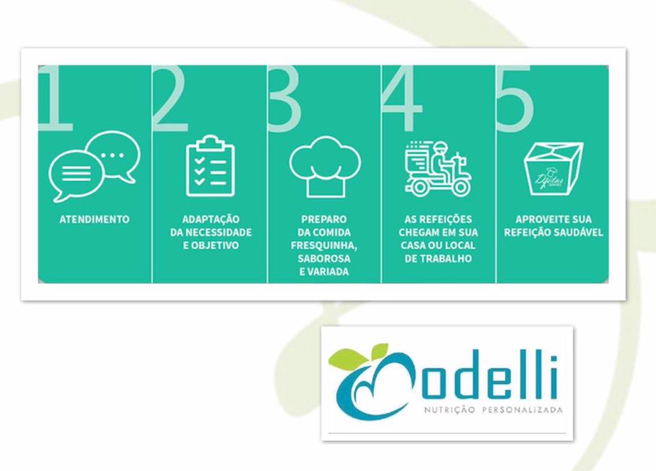 Pensando em você e na correria do seu dia a dia, a Modelli disponibiliza Kit's dieta para quem busca na alimentação saudável uma melhor qualidade de vida e a possibilidade de alcançar o seu objetivo nutricional. Diariamente, você receberá seu Kit Dieta, que contém as refeições completas, preparadas no dia e prontas para o consumo.