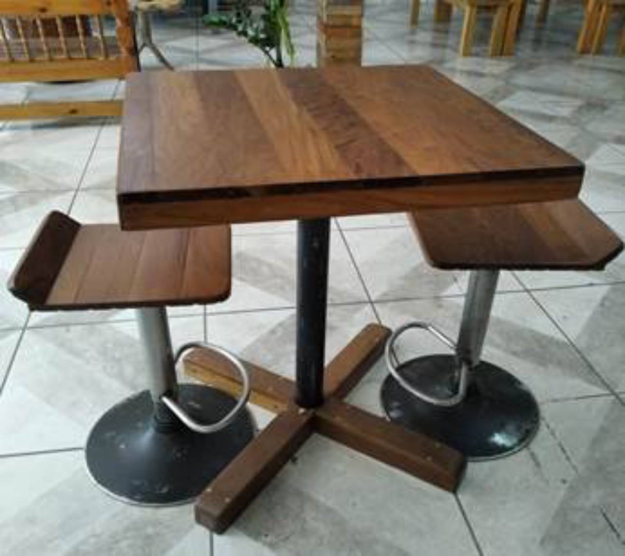 mesa Bistrô de Ipê pés de Inox com 2 Banquertas