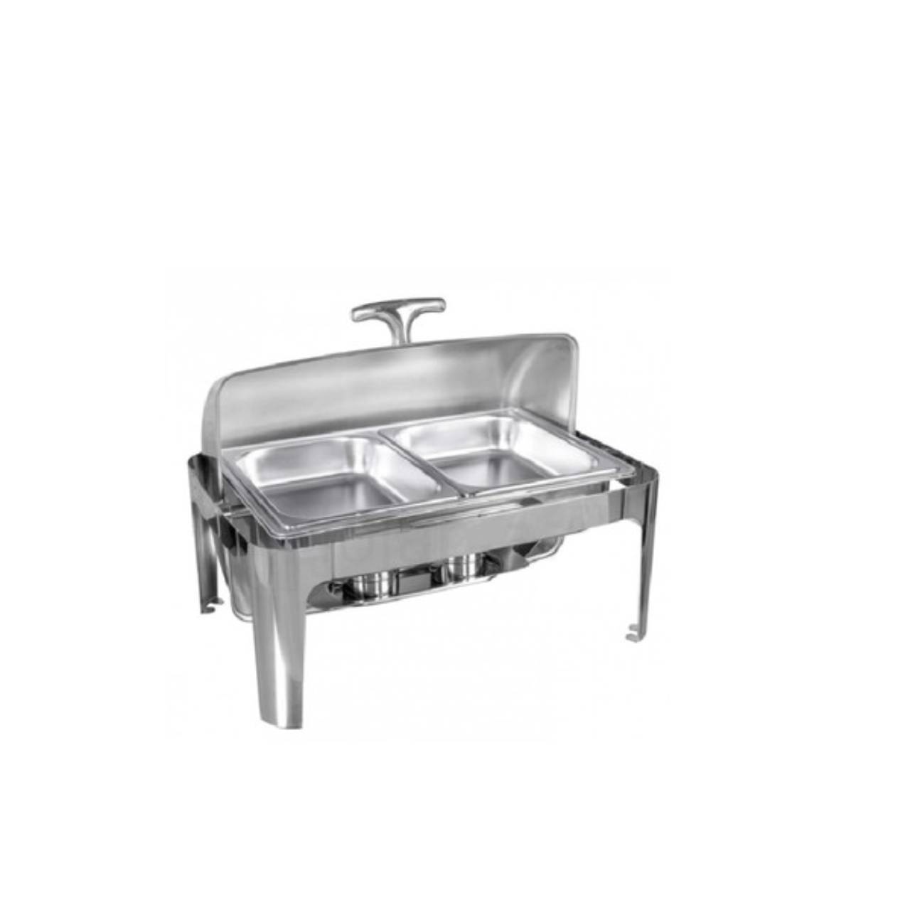 Rechaud de Inox Retangular com 2 Cubas e Tampa Basculante Rouche