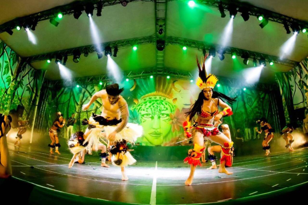 O Teatro Encanto Brasil tras para Foz do Iguaçu um Show com danças tipicas da Amazonia.