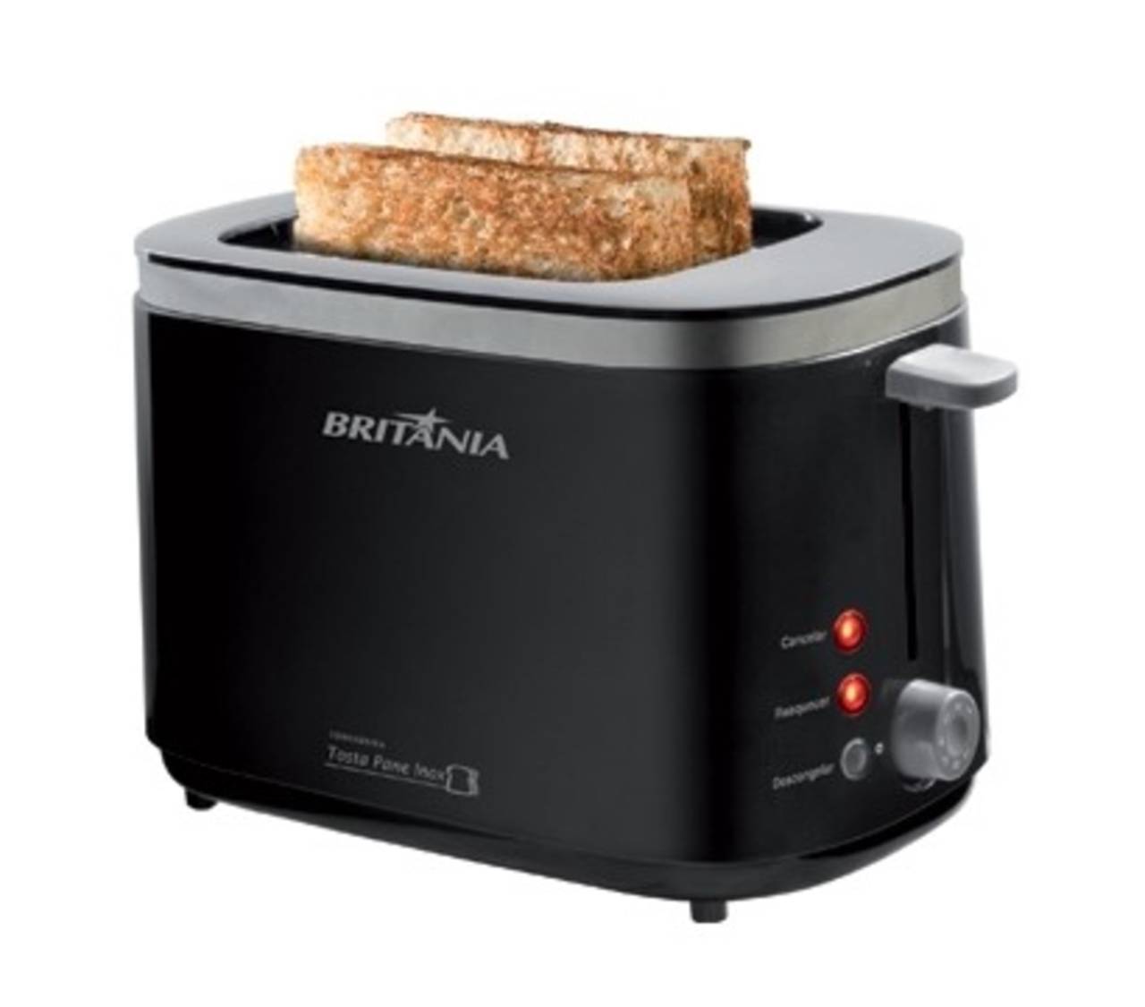 Funções: descongelar, reaquecer, cancelar; ? 7 níveis de Tostagem; ? Capacidade para 2 torradas; ? Pés antiderrapantes; ? Luz indicadora de funcionamento; ? Coletor de migalhas removível; ? Porta fio. ? Composição plástico e metal. ? Garantia de 1 Ano.