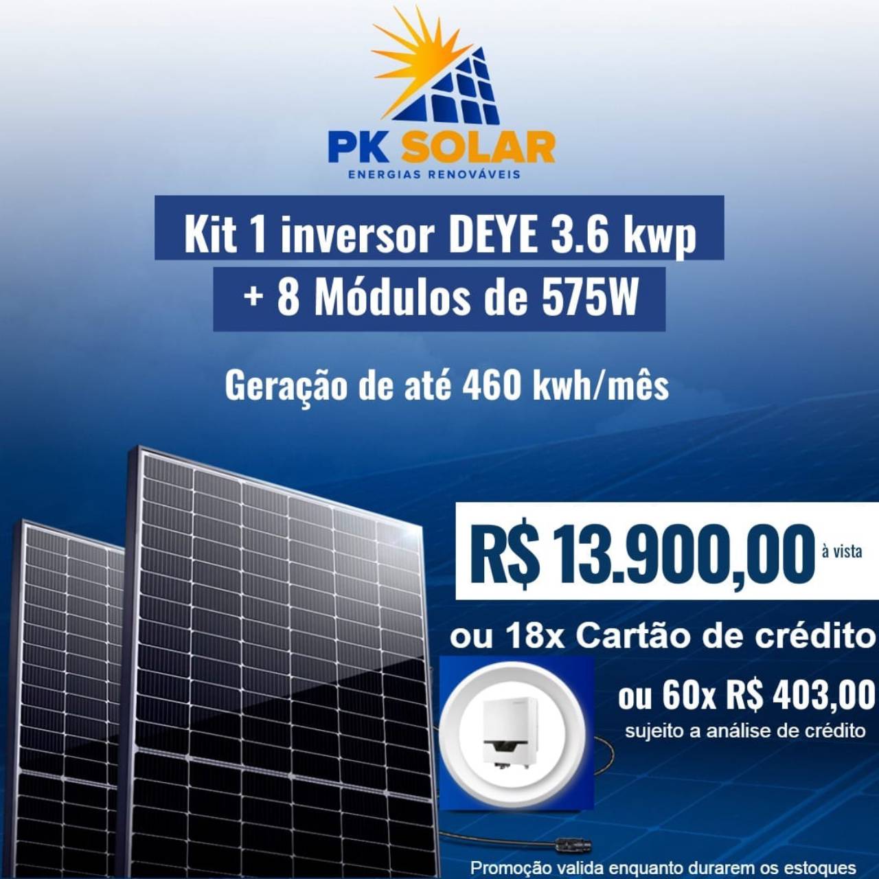 1 inversor Deye 3,6kwp + 8 módulos de 575W