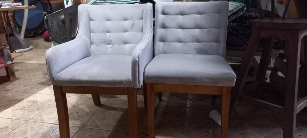 Estofados | TapeçariaCadeira de Mesa de Jantar em Veludo Cinza, Itaocara - Carlão Capoteiro e Estofador