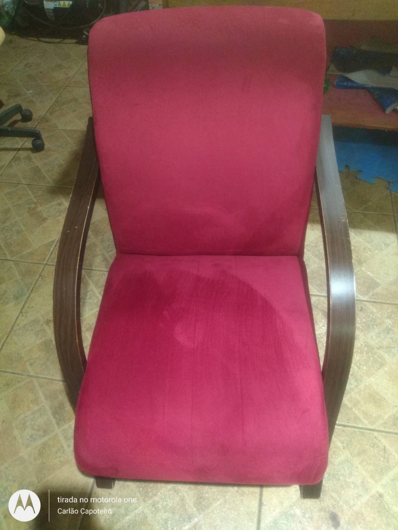 Troca de Estofamento de Poltrona Interna para Sala - Material Sued Vinho