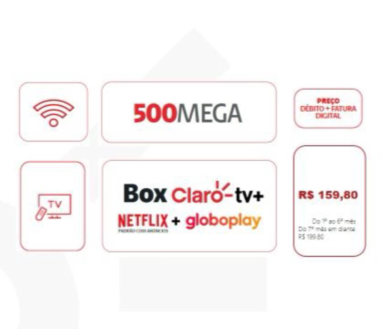 500 MEGA + Box Claro Tv + Netflix + Globoplay