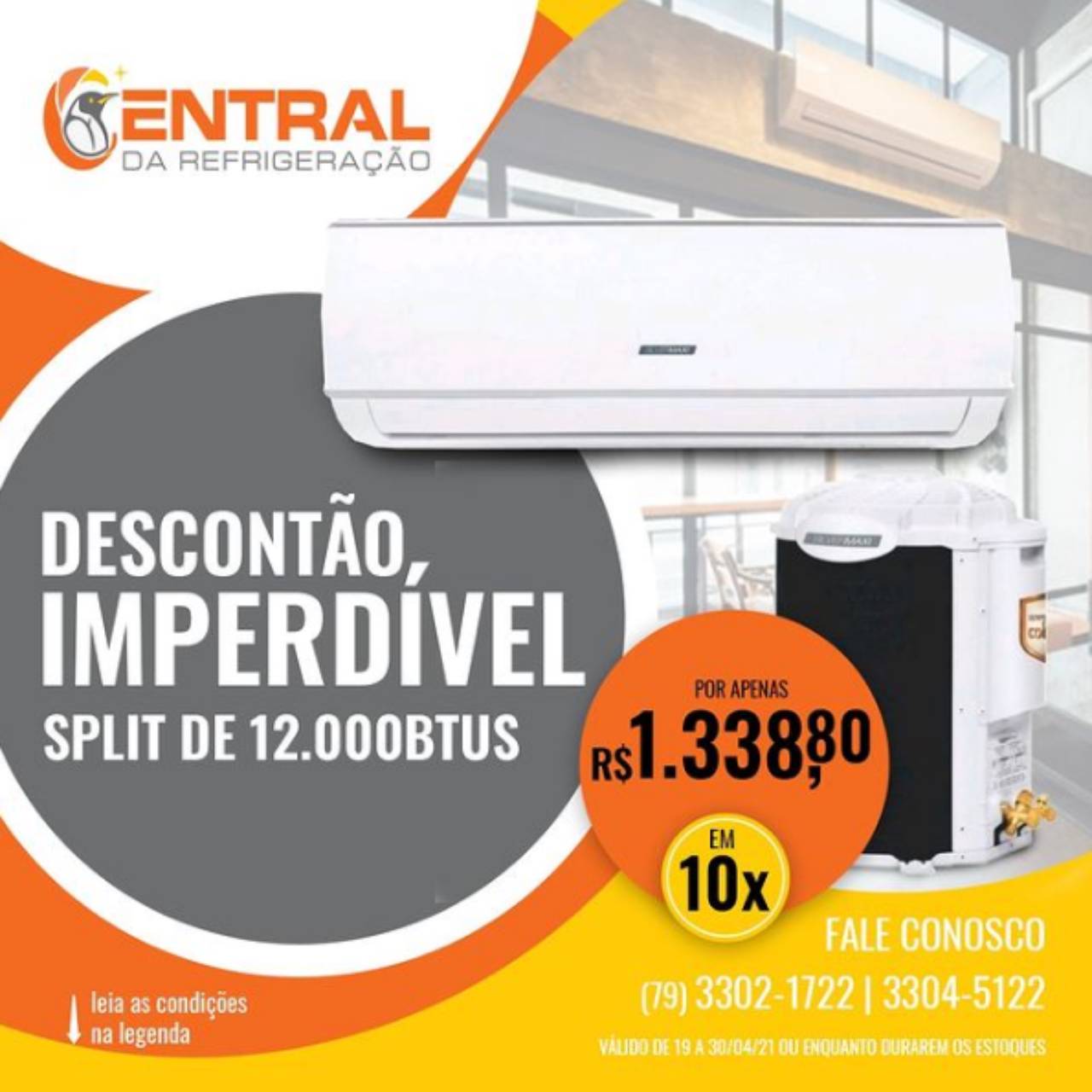 ➡Modelo Split de 12.000 BTUs com pagamento em 10x de R$ 133,88 (em todos os cartões, exceto Banese Card)