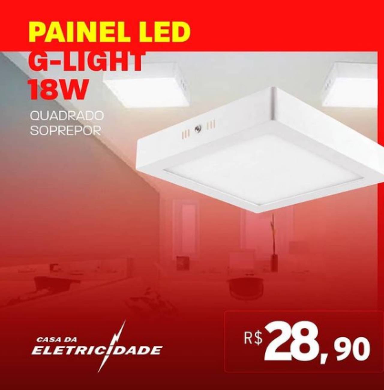 Para começar bem o seu Sábado, olha só as ofertas de painéis LED que preparamos para você: Painel Led G-Light 18w quadrado sobrepor (luz branca) por R$28,90; Painel LED G-Light quadrado Embutir (luz branca) por R$145,90. Essas e outras ofertas você encontra aqui na Casa da Eletricidade! Agora venha antes que acabe, pois essas promoções são por tempo limitado ou até durar o estoque.