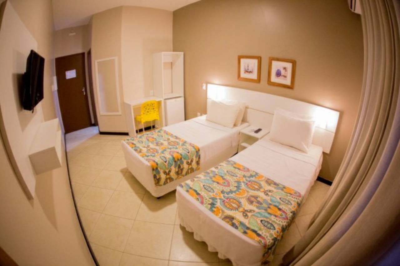 Apartamentos com 16m2, equipados com 01 Cama Queem Casal e 01 Cama de Solteiro, ou se preferir 03 Camas de Solteiro. Possui Ar Condicionado Split, Smart TV 32", armário, mesa de trabalho com internet Wi-fi cortesia, e frigobar. Amplo banheiro privativo.