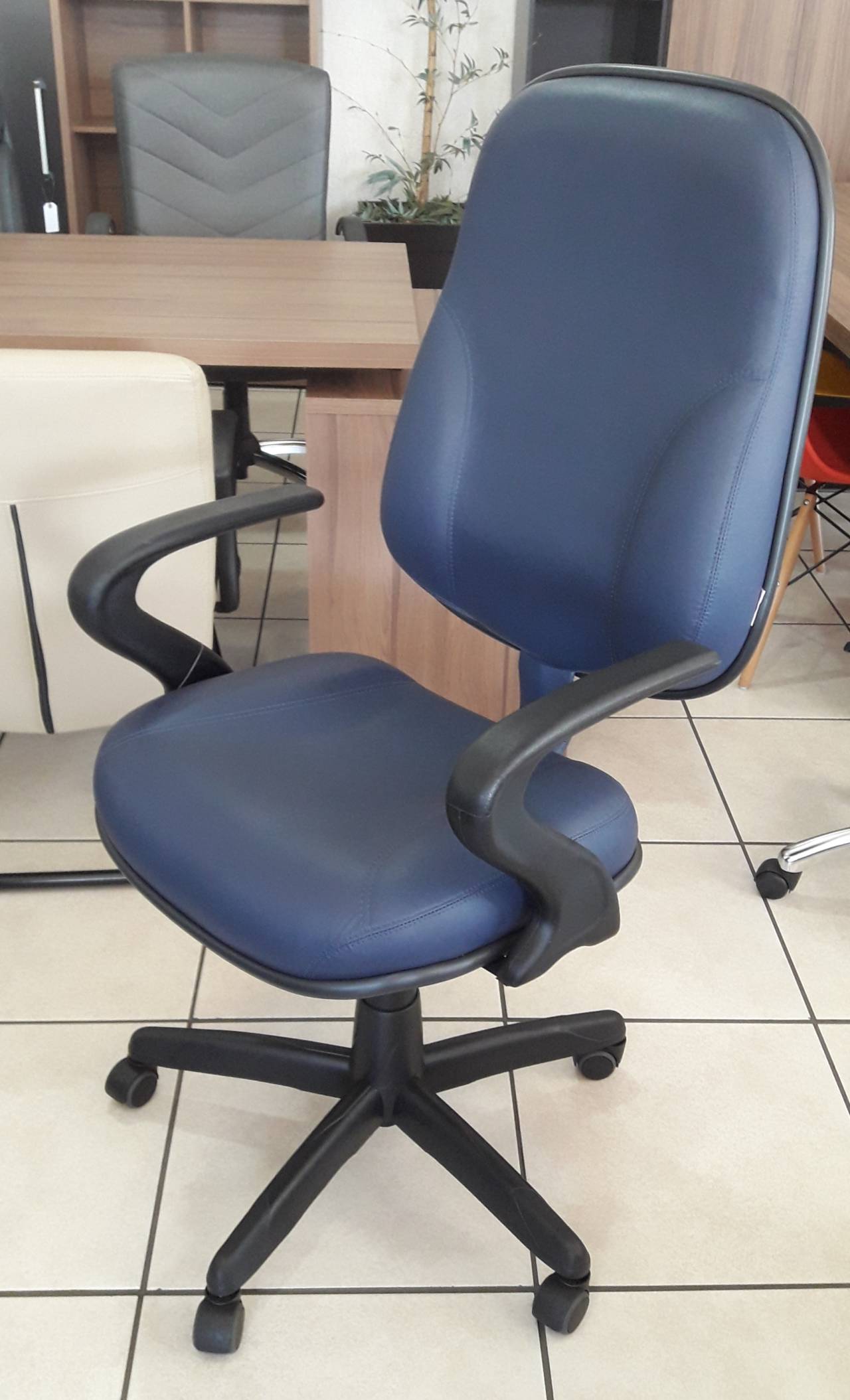 Cadeira Presidente Espuma de alta qualidade (Não deforma) Com formato mais anatômico Com Lâmina (suporte assento/encosto) Giratória Regulagem de altura do assento Rodas simples ou silicone (evita riscos em pisos mais sensíveis) Revestimento corano ou tecido diversas cores
