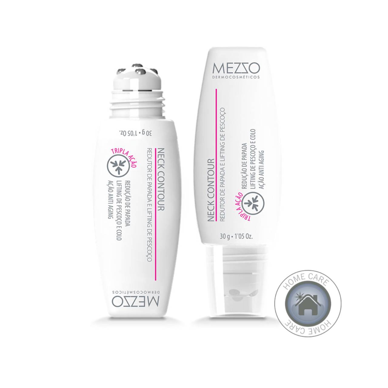 A pele do pescoço e colo exige um cuidado específico, com ativos lipolíticos como a Cafeína e Planta Carnívora, atua sobre o queixo (papada) no combate à redução de gordura acumulada. Através de ativos firmantes como Actificol, reduz a carbamilação das fibras de colágeno e aumenta a firmeza e elasticidade da pele, além da combinação do Ácido Hialurônico em duas formas, baixíssimo e alto peso molecular, Nano Copper Peptídeo e Aminoácidos, juntos atuam no resgate da jovialidade, preenchimento de linhas e rugas além de intensa hidratação. Possui um bico aplicador e massageador, que facilita a aplicação e permeação dos ativos, promove uma nova pele e um novo contorno facial.