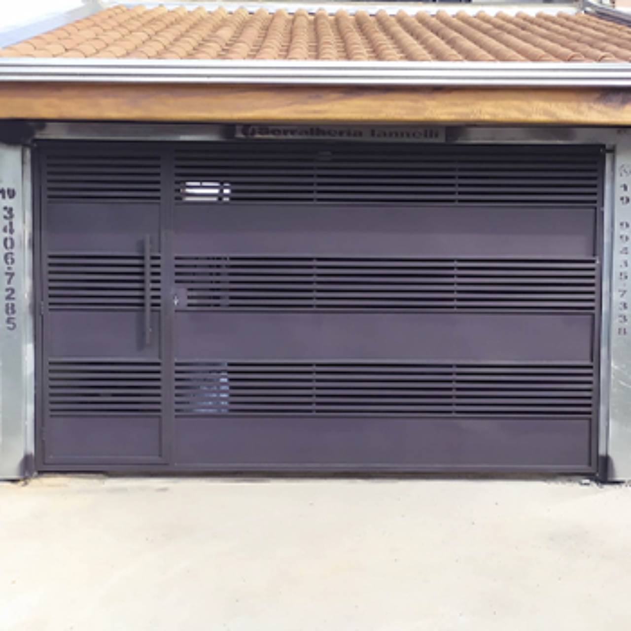 Portão basculante de diversos modelos: aberto, fechado, com desenho, personalizado, corte a laser, em tubo, com trava de segurança, com social embutido ou com social separado, em chapa ou metalon, moderno ou rústico.