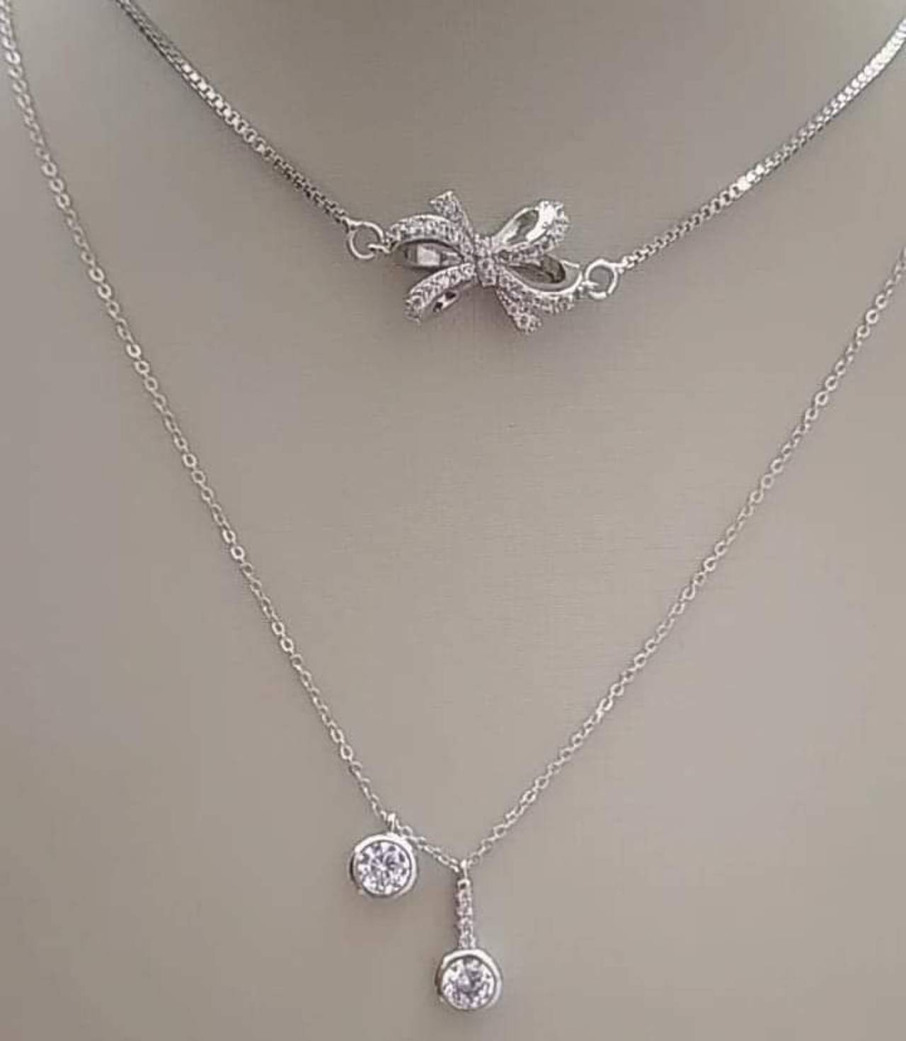 Choker e gargantilha delicadas mo rodhium branco com zircônias