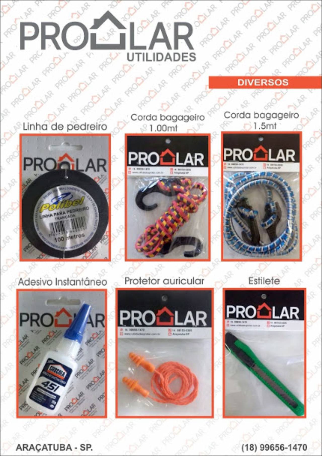 Linha p/Pedreiro, Elástico, Cola Instantânea, Protetor Auricular, Estilete