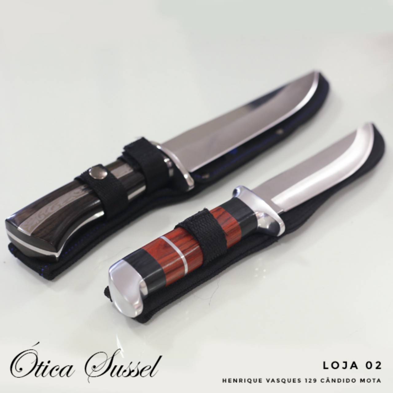 Facas Esportivas na Ótica Sussel em Cândido Mota. Fabricado em aço ótima qualidade ideal para Coleção e pratica de esportes com caça, pesca, trilha e etc.
