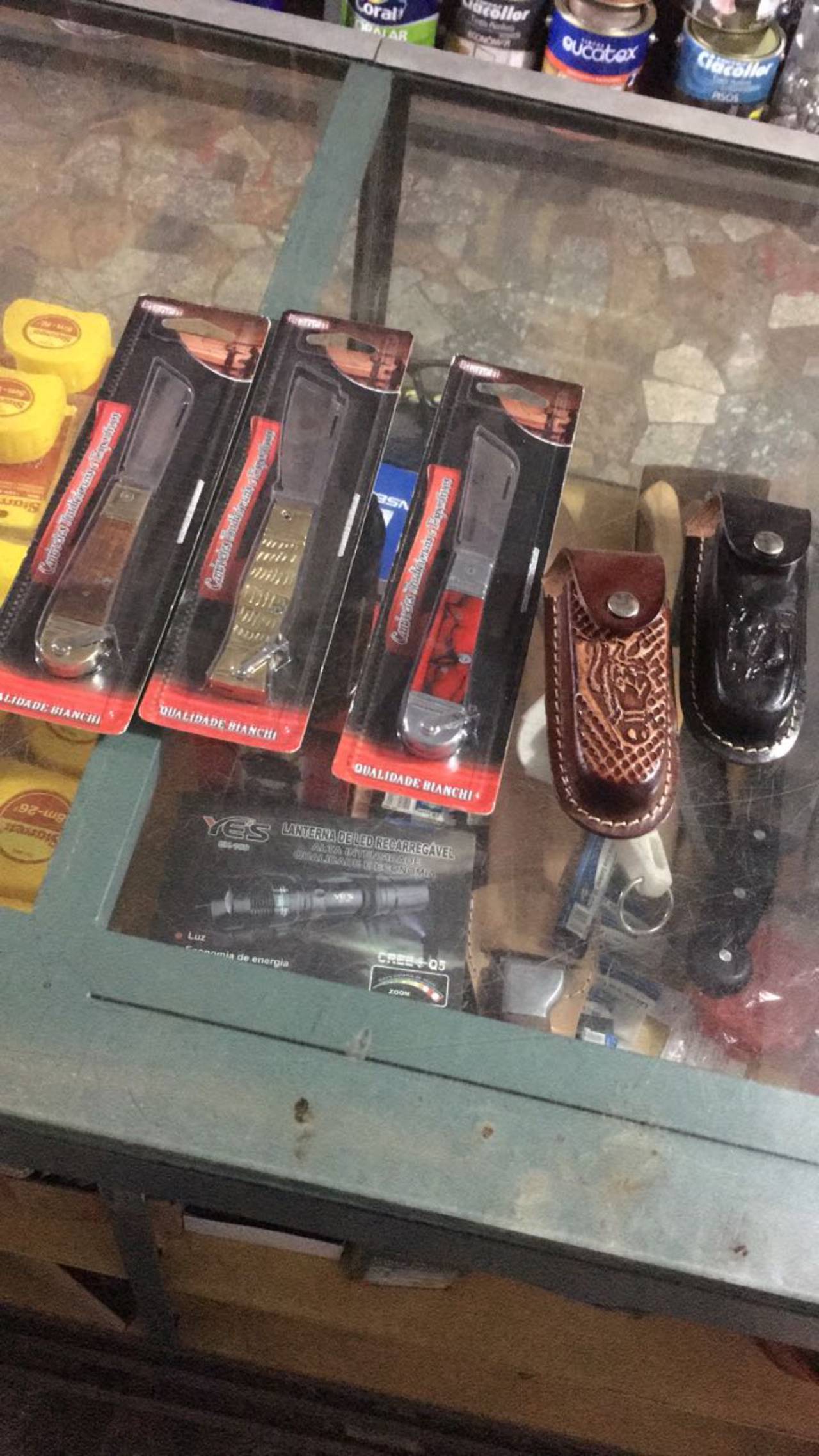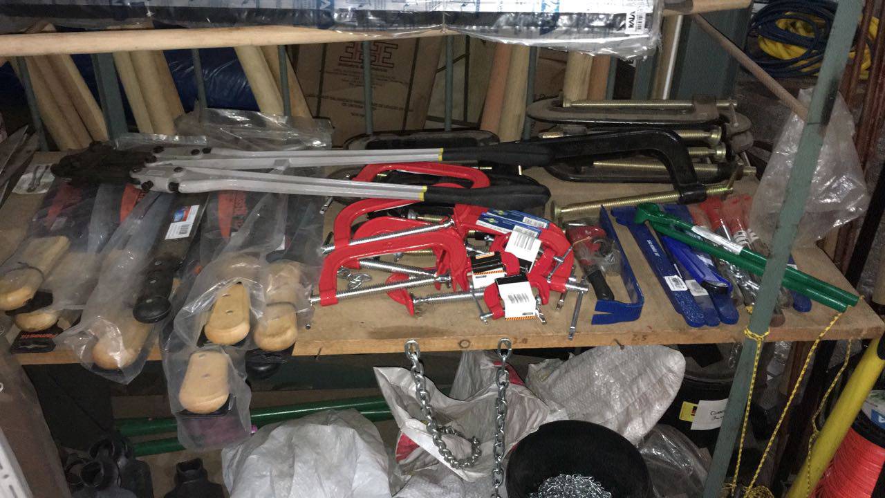 Serrote, Facão, Facas, Estiletes, Canos de PVC, Canos, Pincel, Chaves de fenda e phillips.