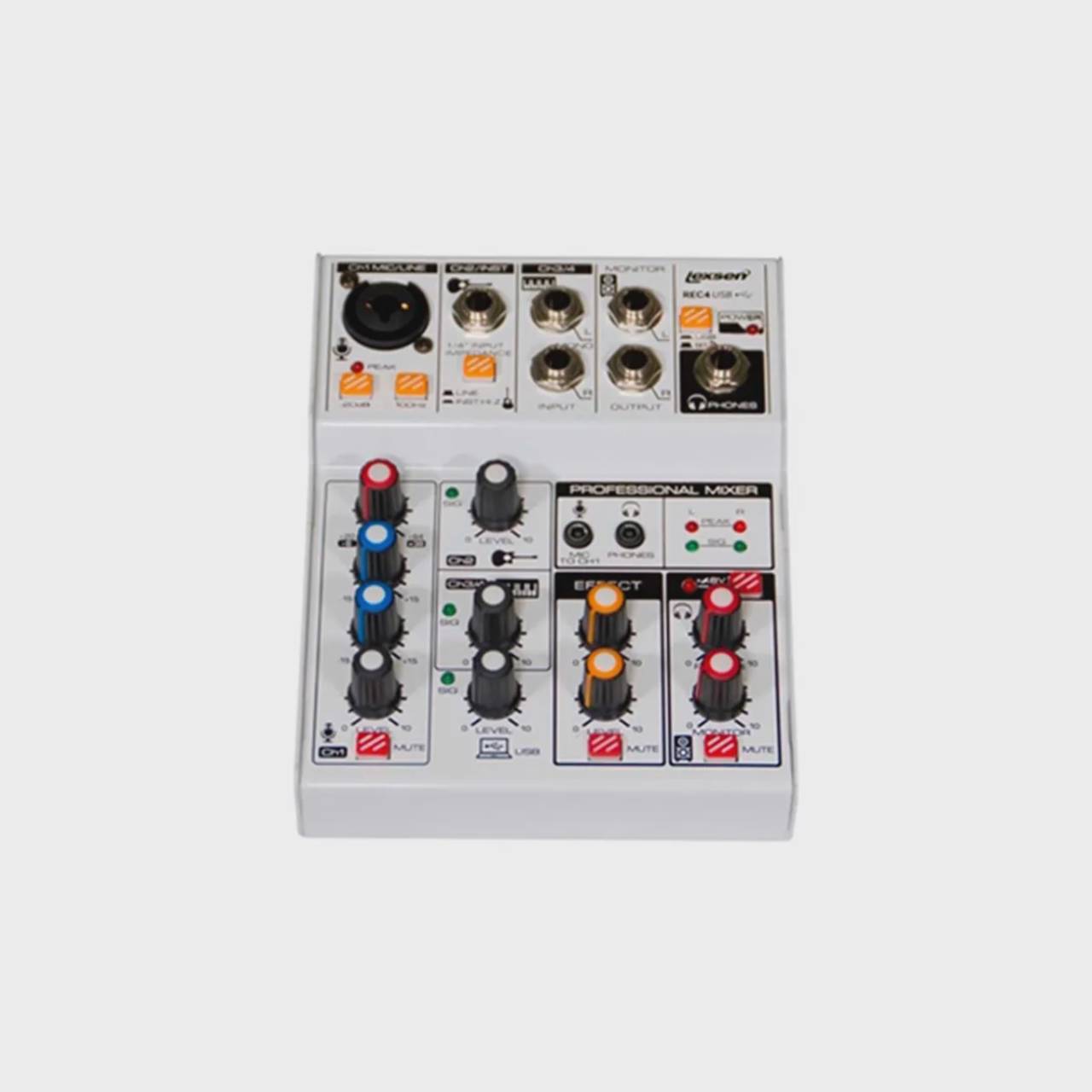 - Canais: Nossas mesas de som variam em número de canais, desde 4 até 32 canais, permitindo que você conecte múltiplos instrumentos e microfones simultaneamente.