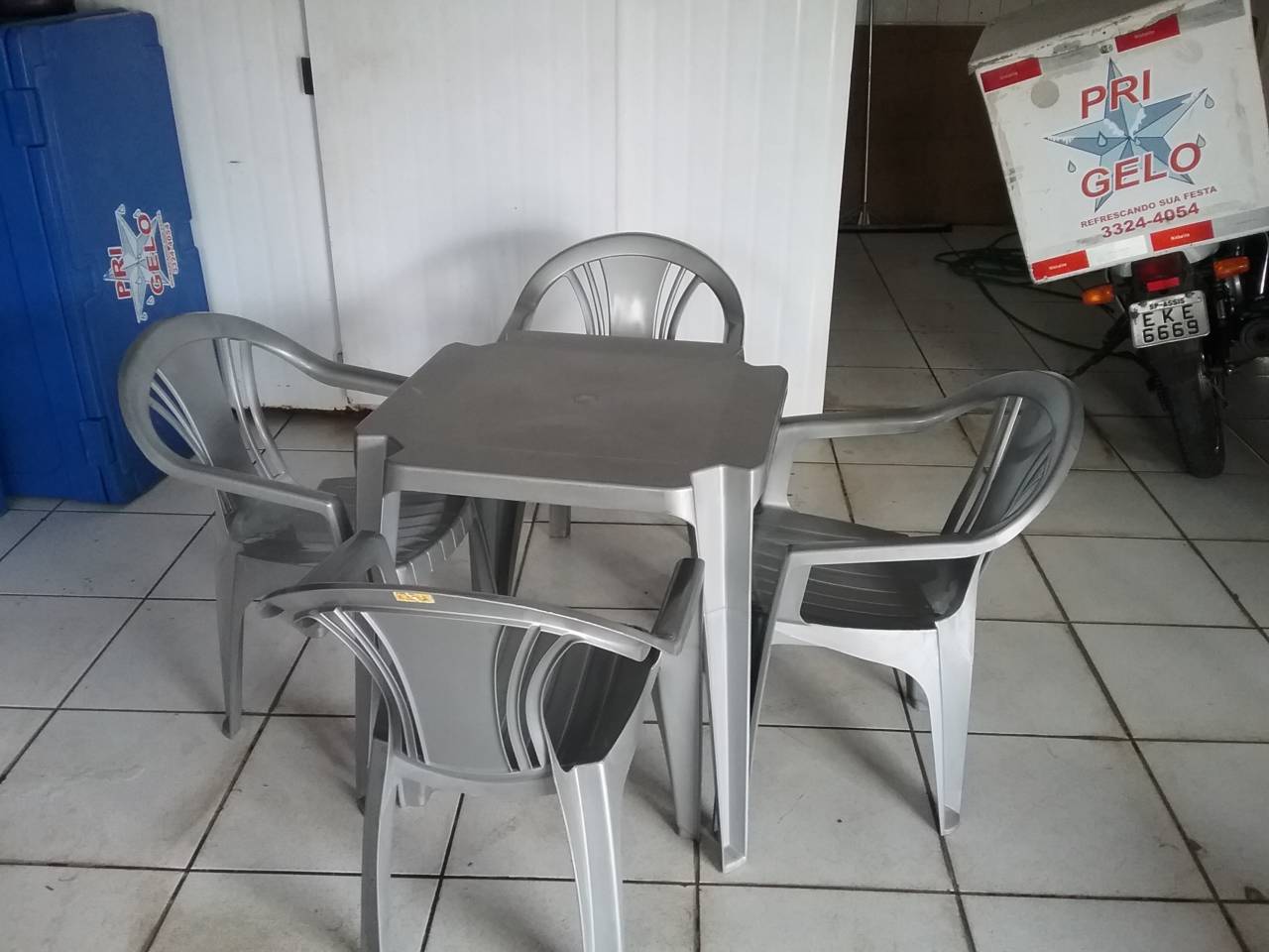 Jogo de mesa plastica + 4 cadeiras com apoio.