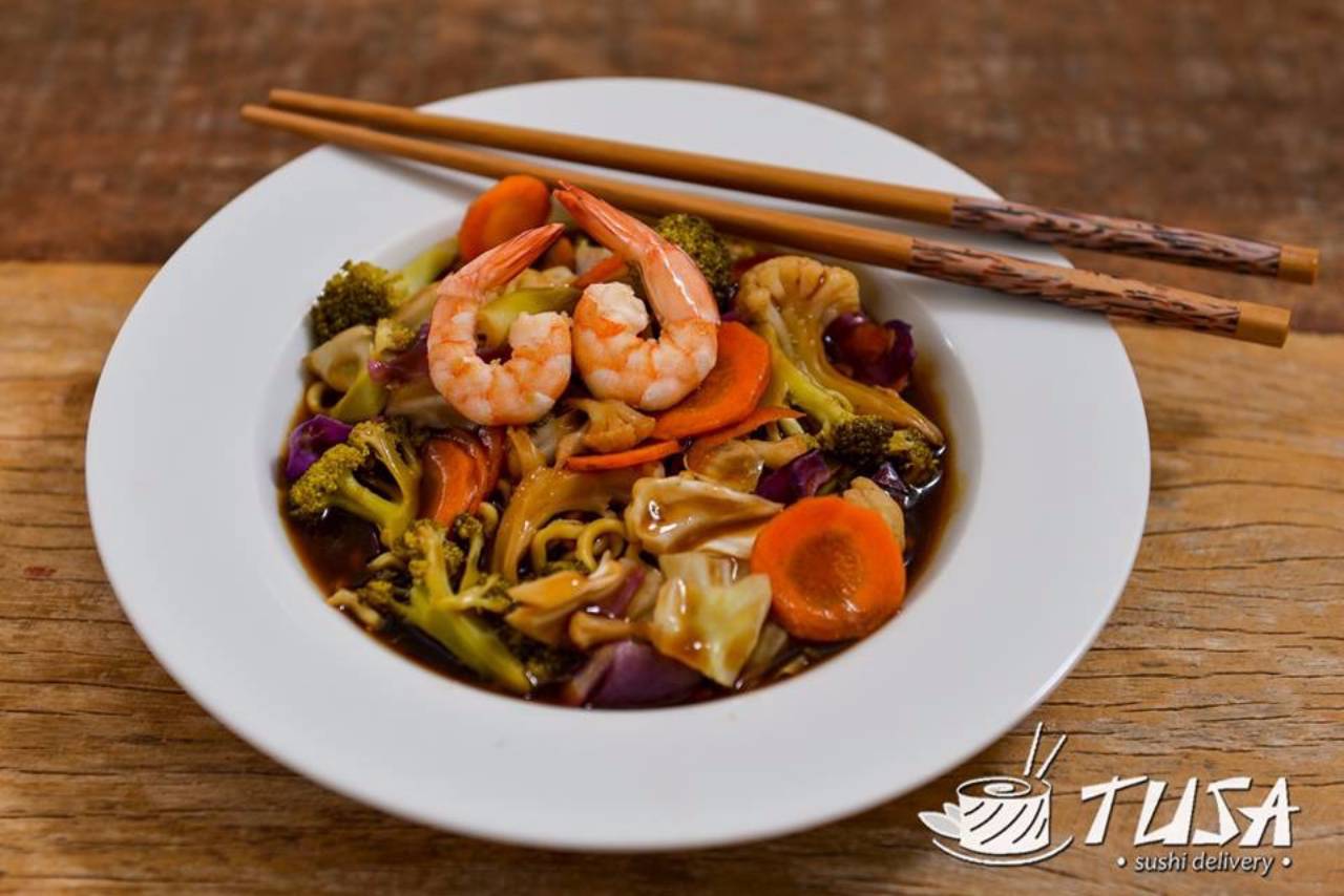 Yakisoba: Delicioso macarrão acompanhado de legumes frescos levemente salteados no óleo de gergelim, molho e acompanhamentos de sua escolha.