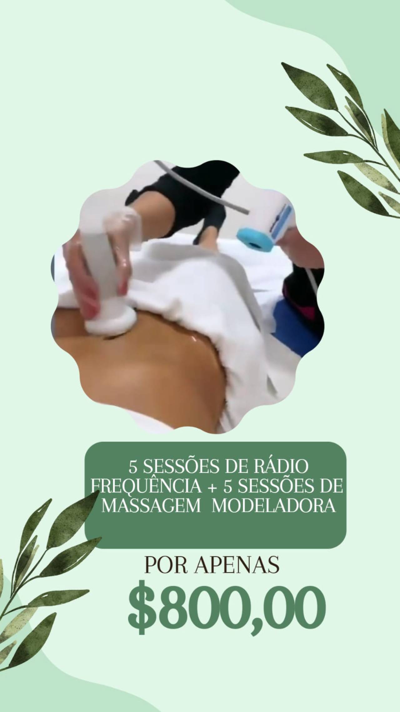 Este pacote inclui 5 sessões de rádio frequência e 5 sessões de massagem modeladora, proporcionando tratamentos eficazes para redução de medidas e melhora da firmeza da pele.