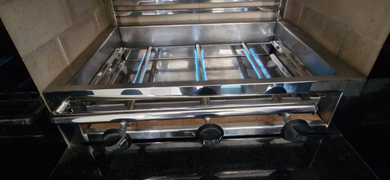 A churrasqueira a gás em inox, fabricada com precisão em Lençóis Paulista, SP, é ideal para quem busca agilidade, controle de temperatura e acabamento sofisticado. Uma opção moderna para áreas gourmet e varandas com espaço otimizado.