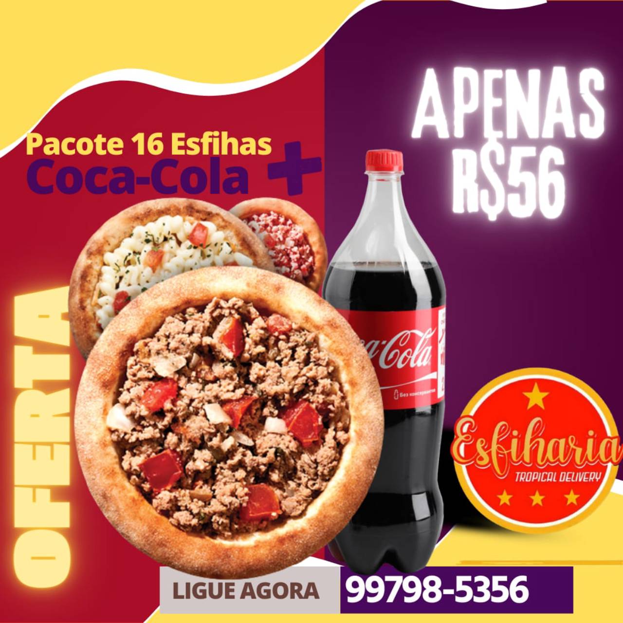 Esfiharia Tropical Delivery oferece em Avaré esfihas deliciosas com ingredientes selecionados, contamos com serviço de delivery, se você procura por Combo de esfihas + Refri entre em contato conosco e faça já seu pedido.
