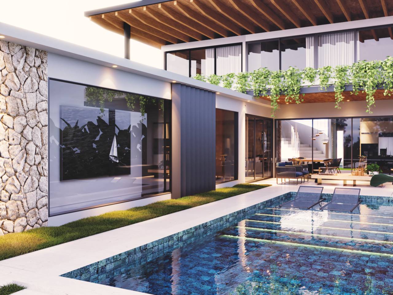 - Design integrado para interiores e exteriores.