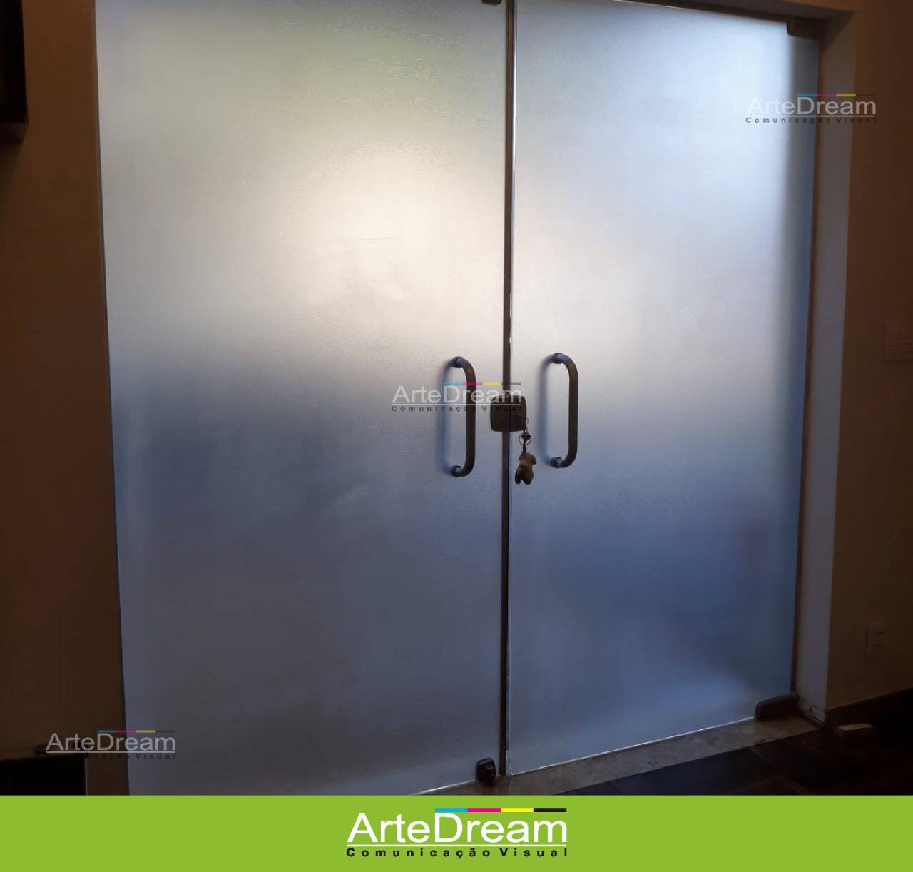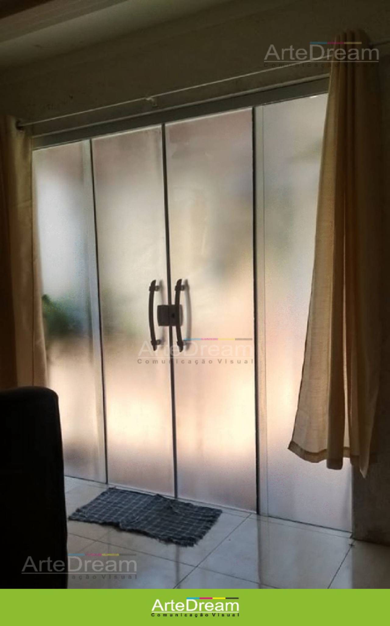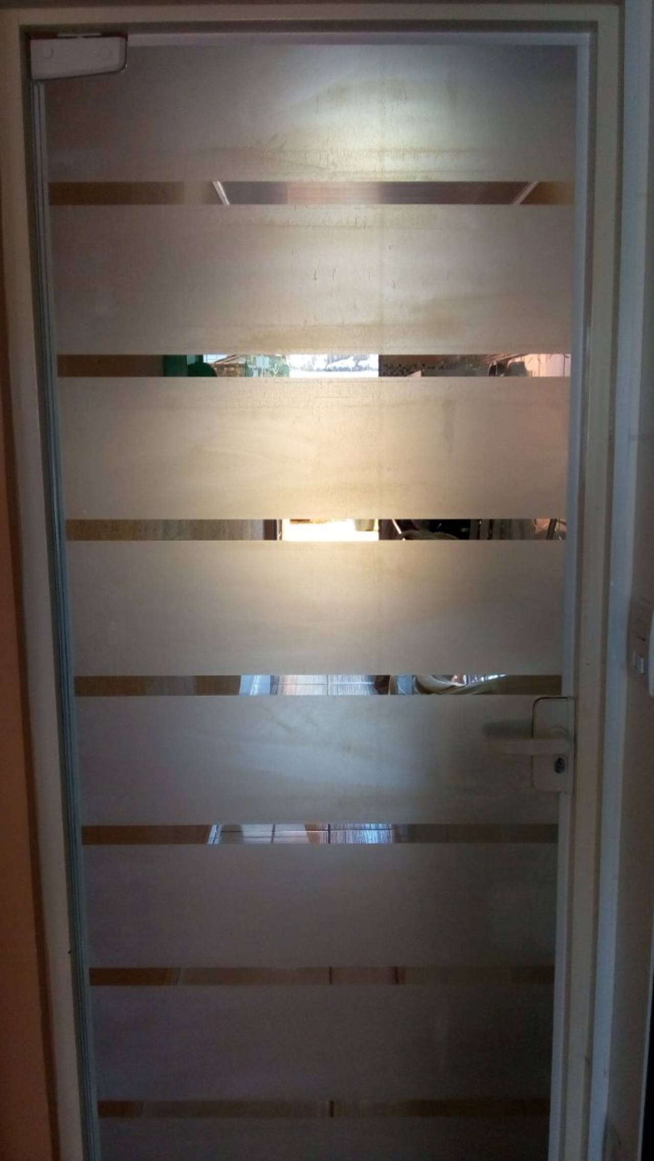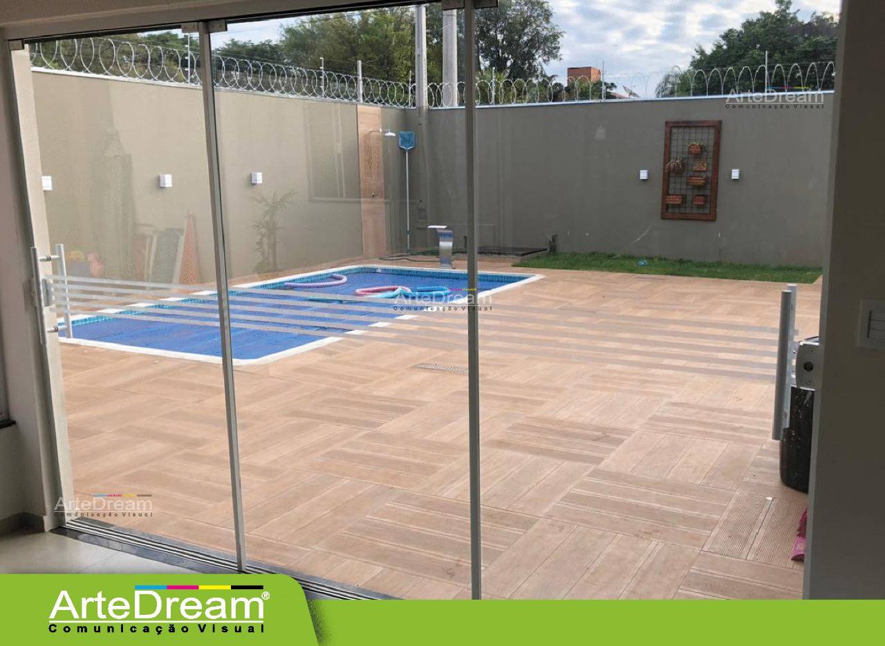 Adesivo em portas e blindex: jateado, chapado, perfurado e cores em Bauru