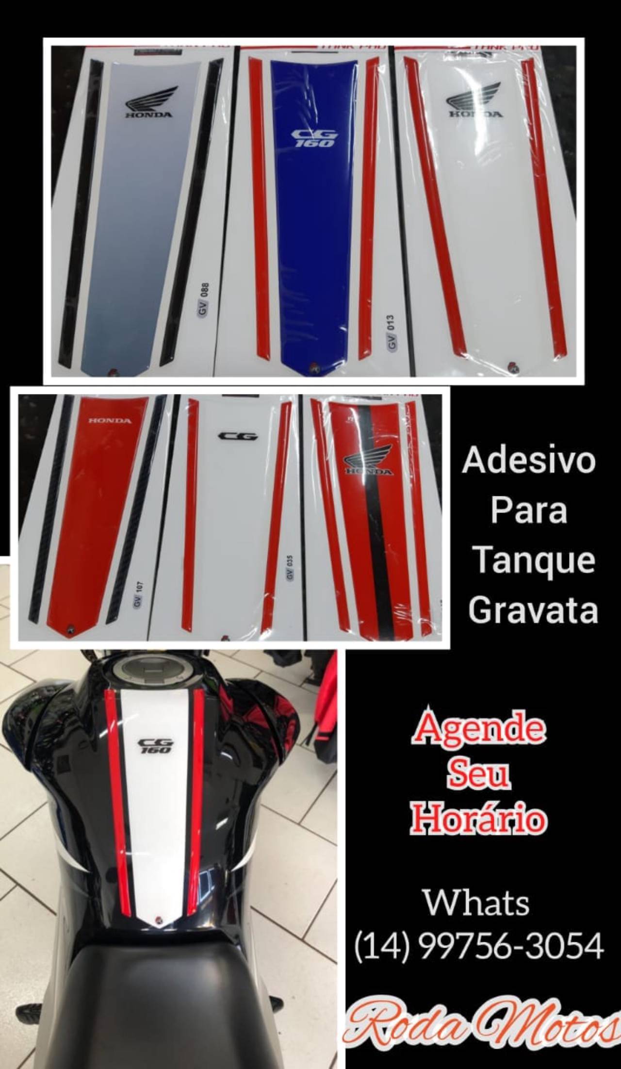 Aqui está o anúncio para a empresa "Roda Motos" sobre o produto/serviço "adesivo para tranque ou gravata de moto":