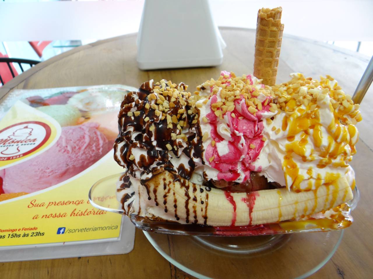 TAÇA BANANA SPLIT 3 bolas de sorvete, caldas, chantilly e castanha