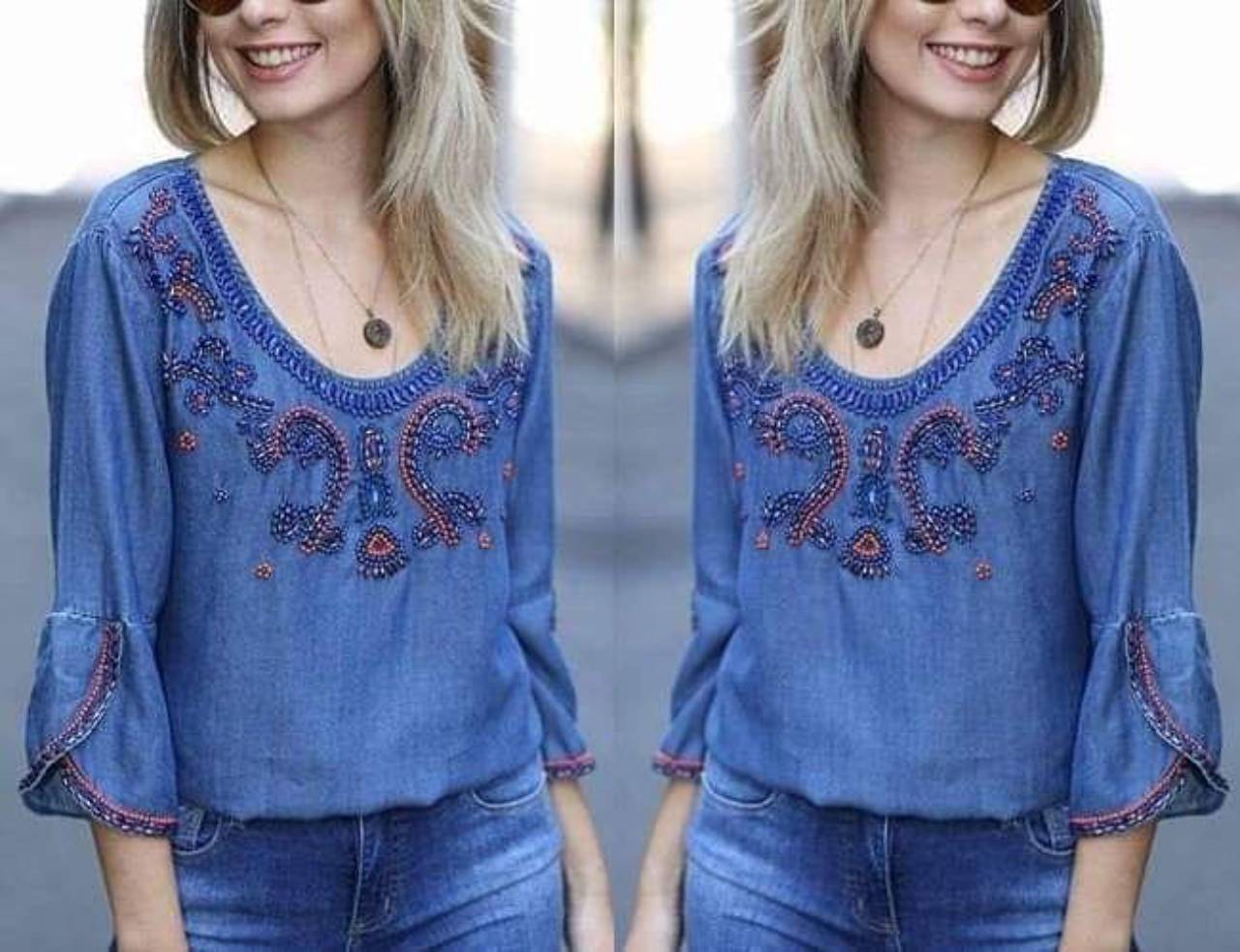 Bata Jeans Bordada c/ Miçangas (Disponível no Tamanho: 40/42)