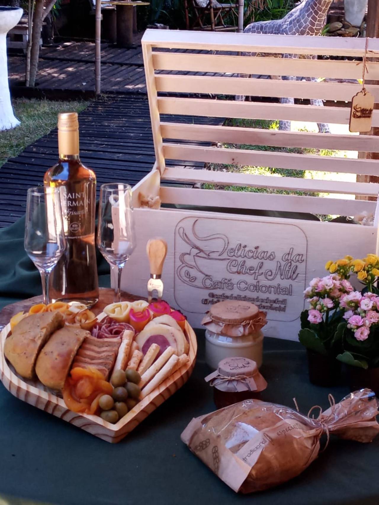 1 granzing de coração com queijos finos,queijos temperados ,queijo recheado,flor de salame ,flor de damasco , palitinho de queijos ,pão pequeno de manjericão ,torradas